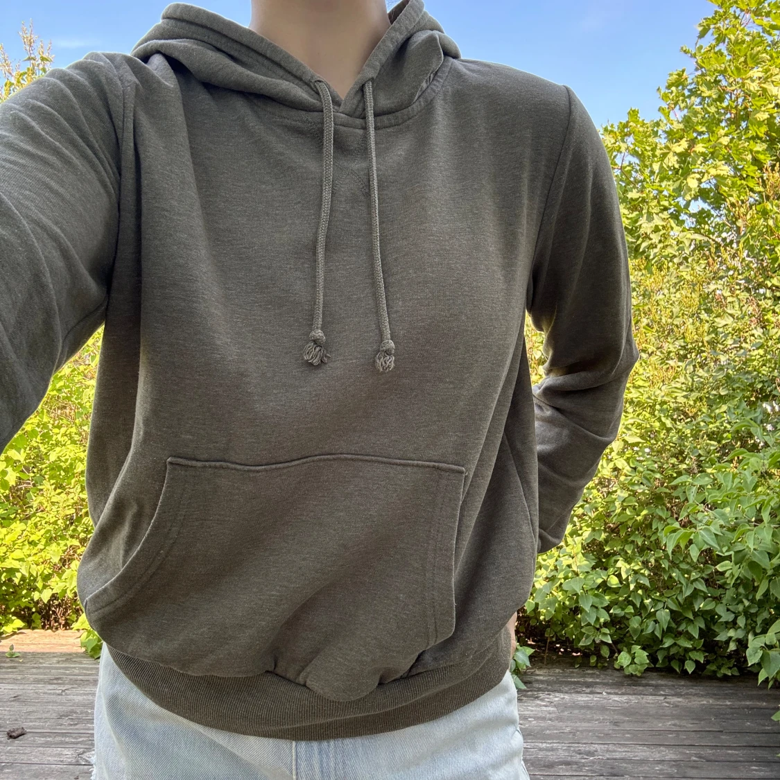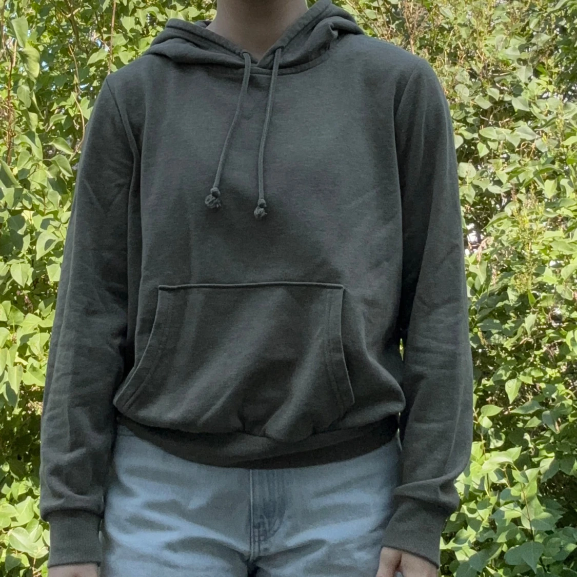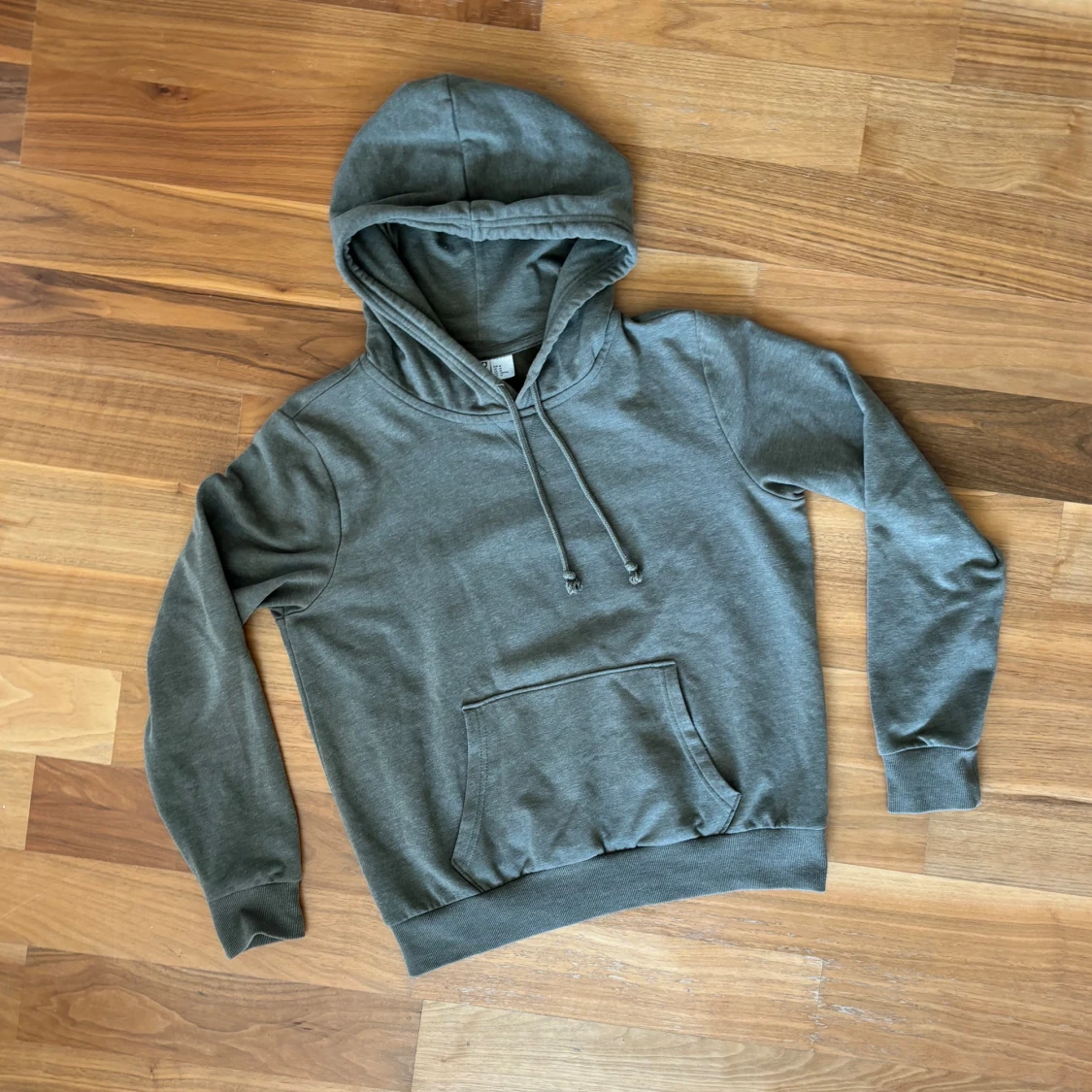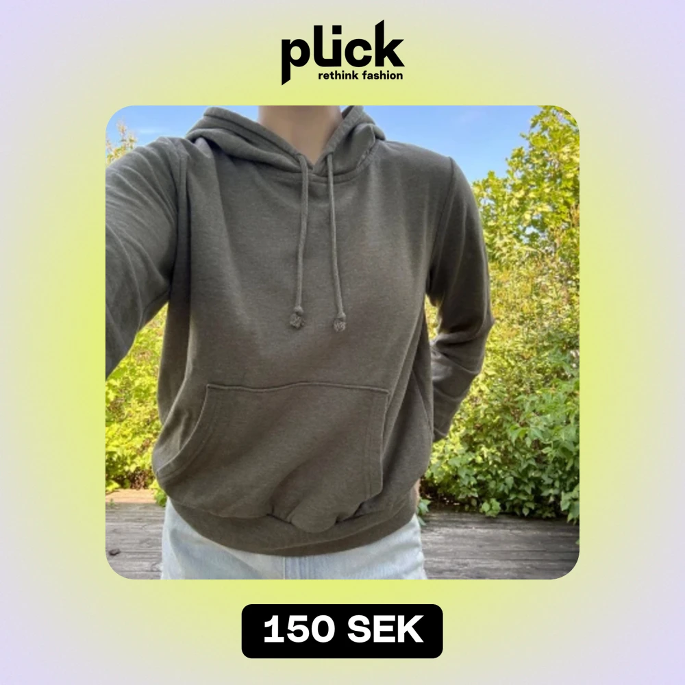 Fin, mossgrön hoodie från HM divided (basic). Storlek: M. Material: 60% bomull + 40% polyester. :)