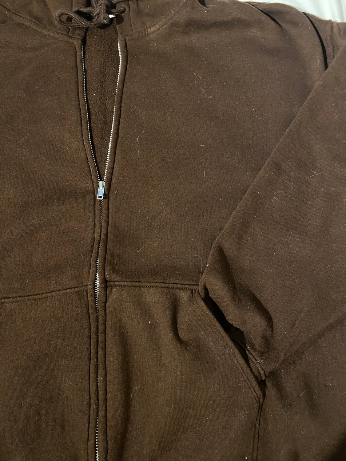 Brun zip-up hoodie från H&M divided i storlek XL men skulle säga M/L. Använd fåtal gånger. Säljer pga att den inte kommer till användning