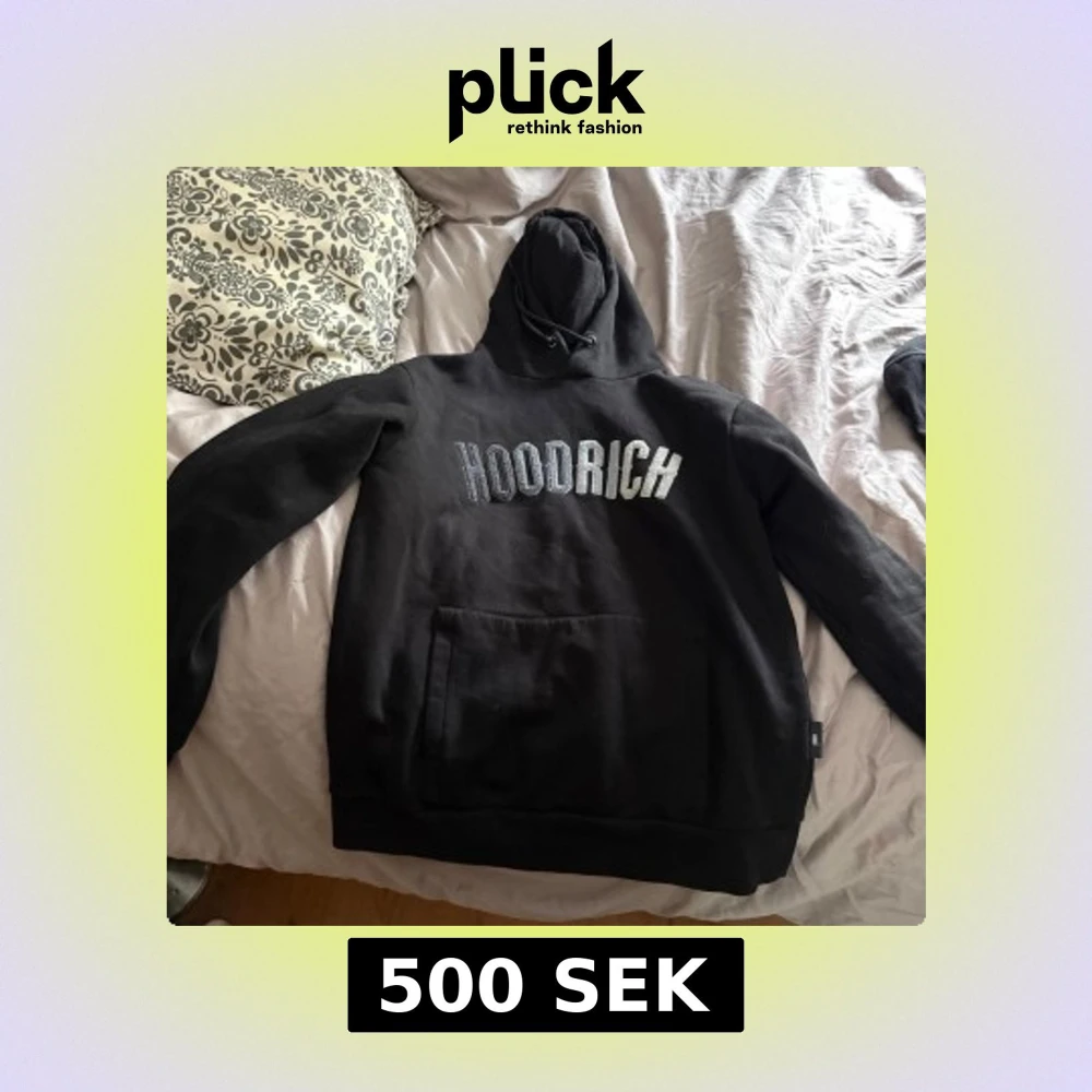 Svart hoodie från Hoodrich med stor broderad logga i vitt och grått på bröstet. Klassisk känguruficka framtill, justerbar huva med snören och mjukt material. Perfekt för en chill och street-inspirerad look.