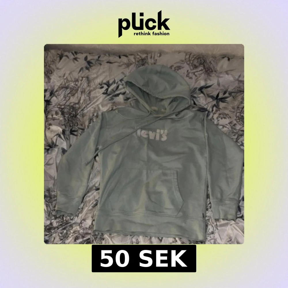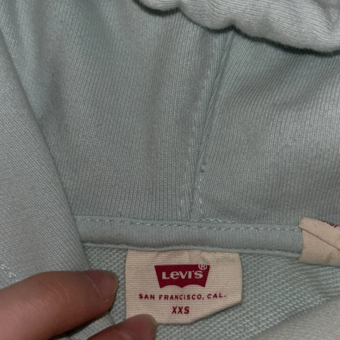 Säljer en ljusblå hoodie från Levi's med klassisk logga på bröstet. Tröjan har en stor ficka framtill och justerbar huva med dragsko. Andvänds några gånger men funkar bra iallafall