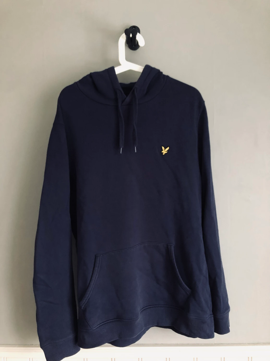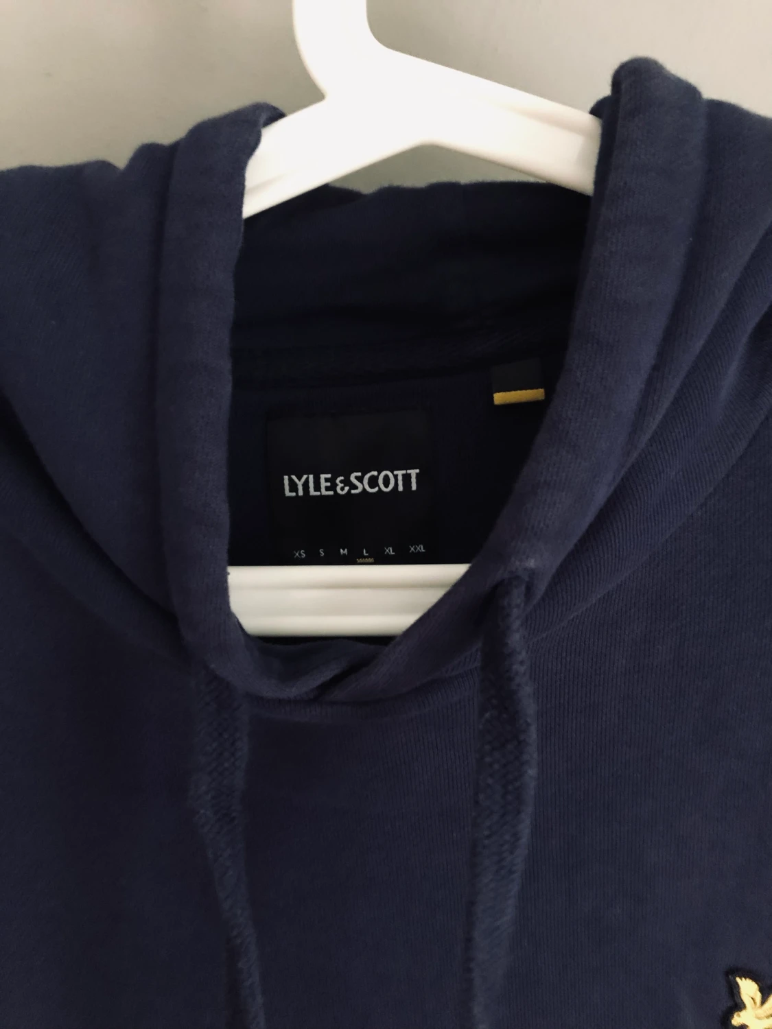 En mörkblå Hoodie av märket lyle & scott. Storlek large och i bra skick.