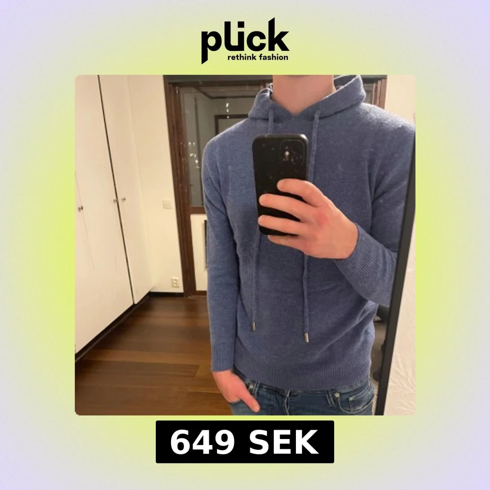 En riktigt schysst blå hoodie i 100% merinoull. Storlek S, men passar S-XS. Hoodien är sprillans ny och har inga defekter. Snörena går att förkorta vid önskan. Tveka inte att höra av dig vid funderingar!