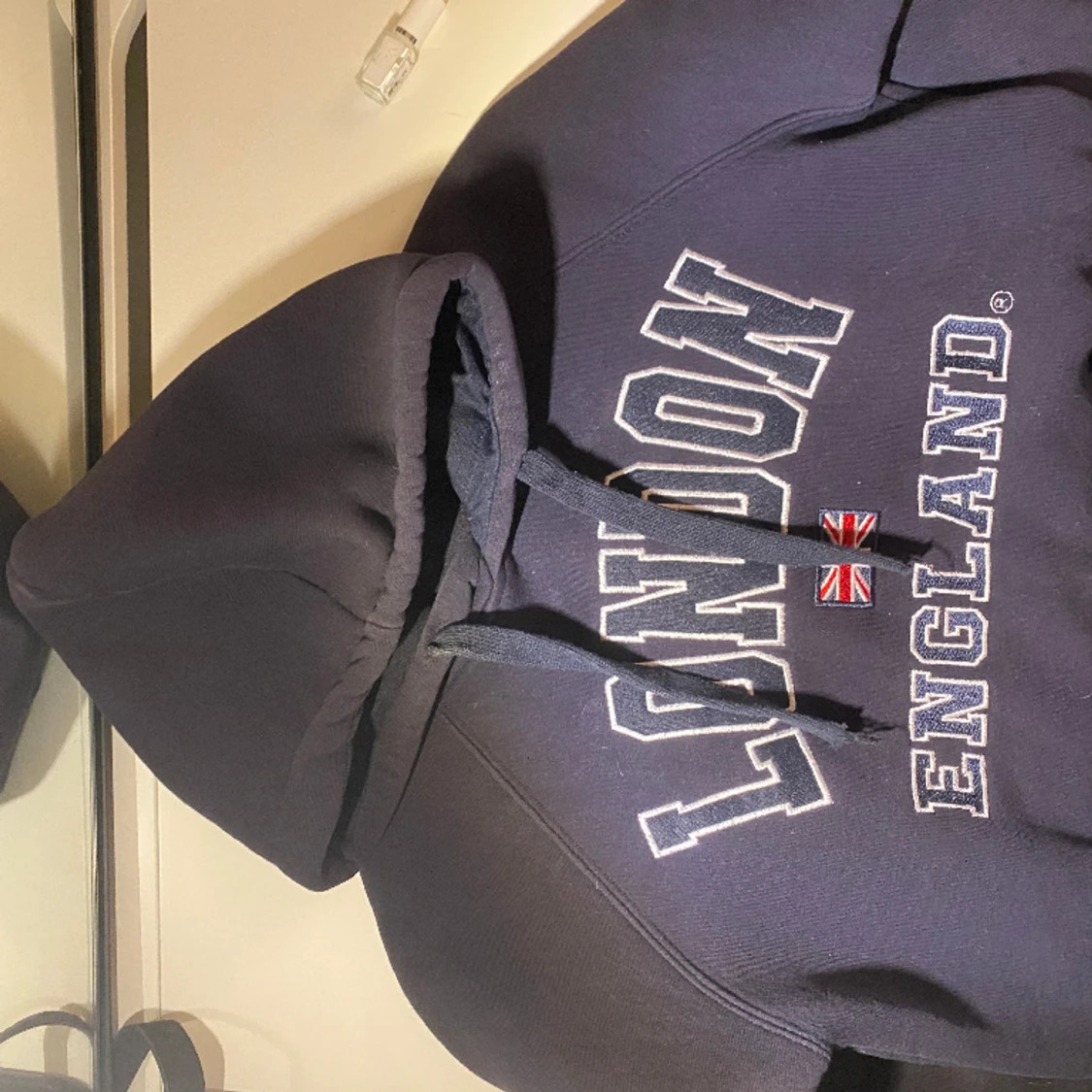 mörklblå hoodie köpt i london! nästan oanvänd men har ett litet hål vid ärmen