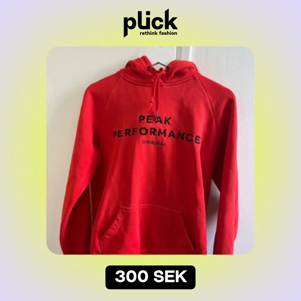 Peak performance hoodie i storlek L. Har vanligtvis storlek S men den sitter bra, inte för stor & inte för liten.