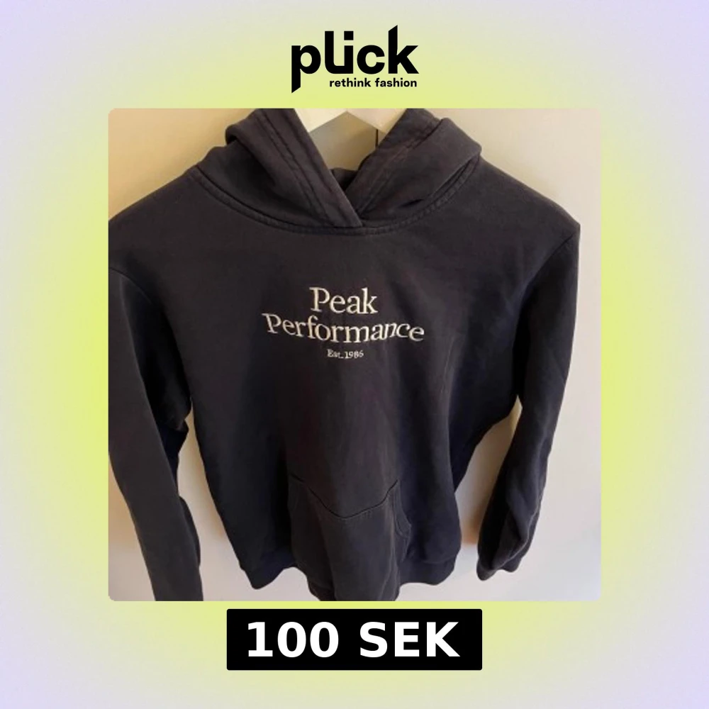 Säljer en mörkblå hoodie från Peak Performance då den inte kommer till användning längre. Passar XS/S