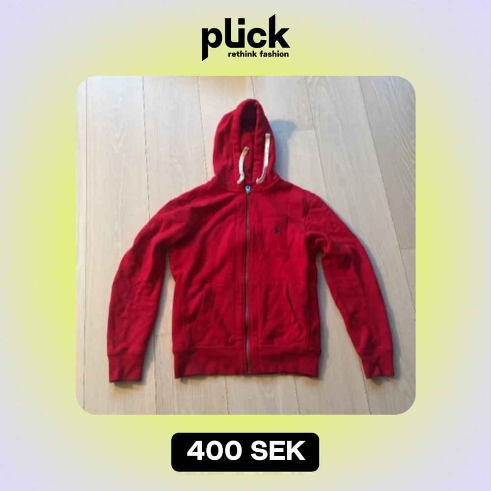 Tjena jag säljer en röd polo Ralph lauren zip hoodie i storlek S🧣 tröjan är i perfekt skick utan några fläckar eller hål🌹hör av er vid frågor❤️