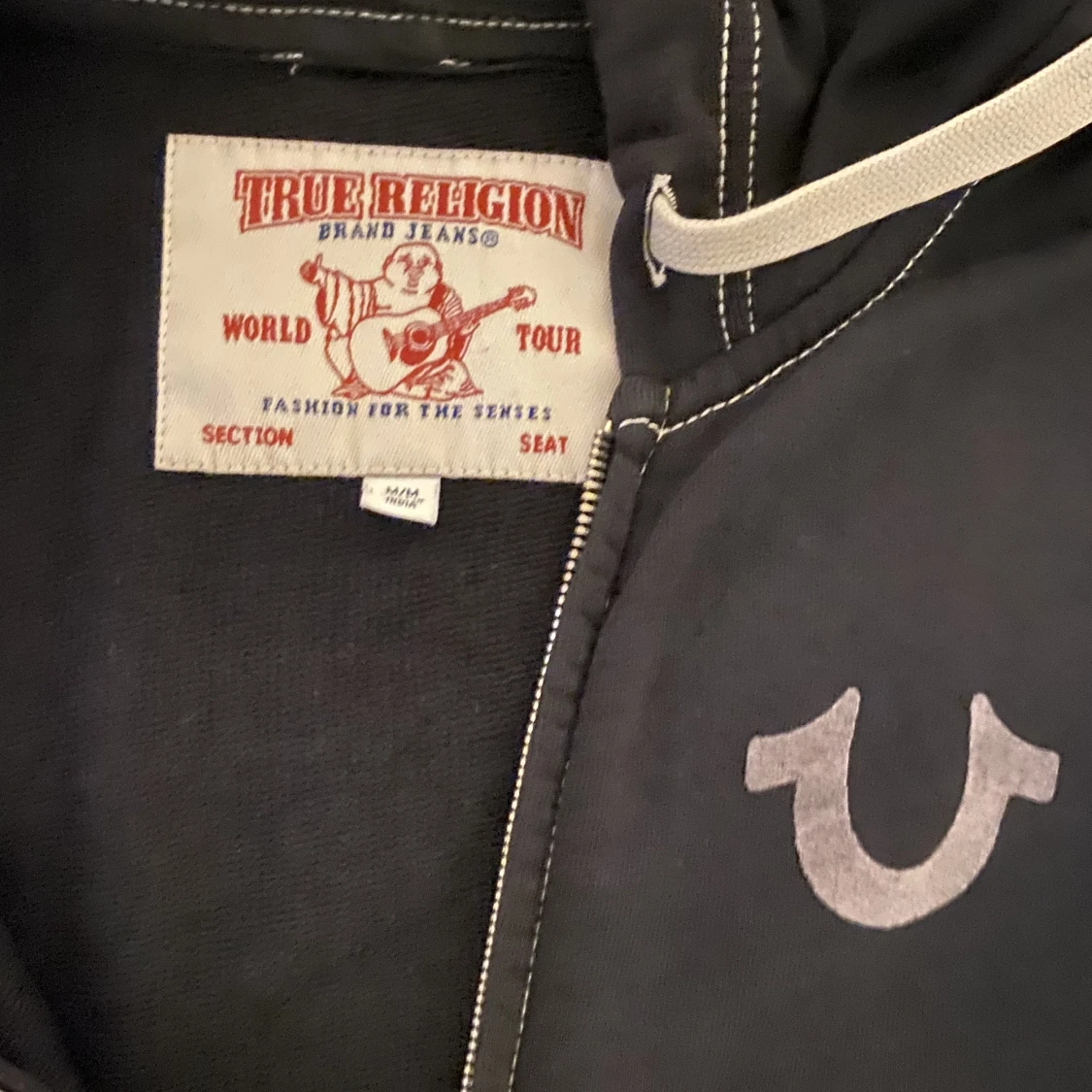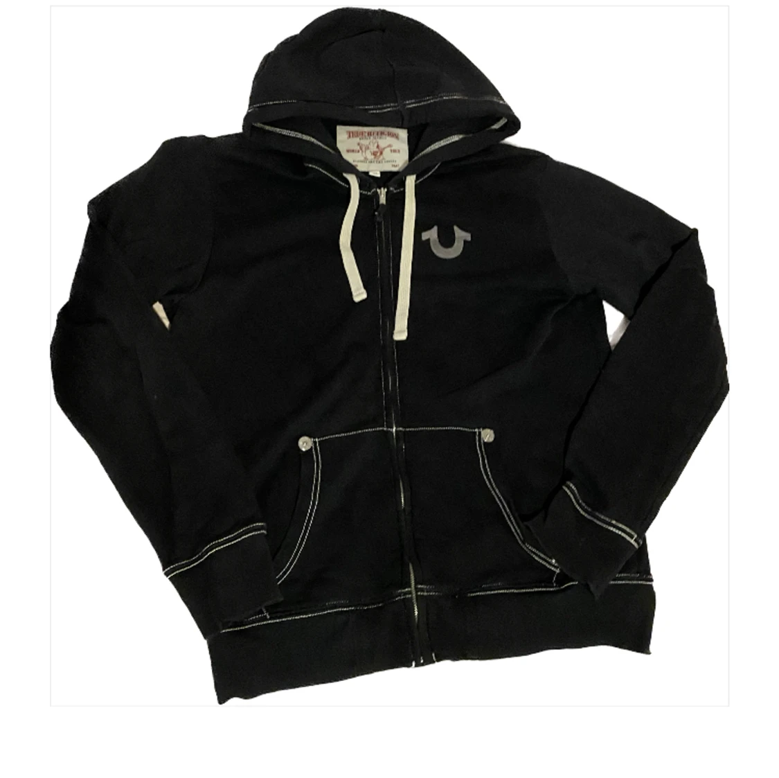 true religion hoodie, white stitching en fläck på armen som är typ 5 mm stor så syns inte. skriv innan ni köper och pris kan såklart ändras
