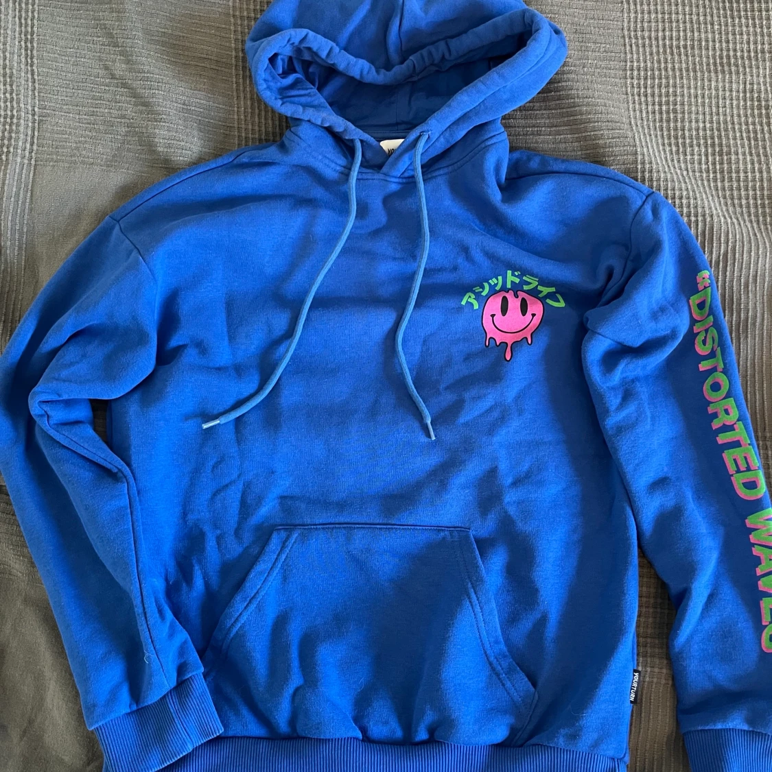 En blå hoodie med coolt tryck i märket yourturn. Osäker på storlek men skulle gissa xs, passar på mig som brukar ha xs/s i kläder. Köpare står för frakt ✨