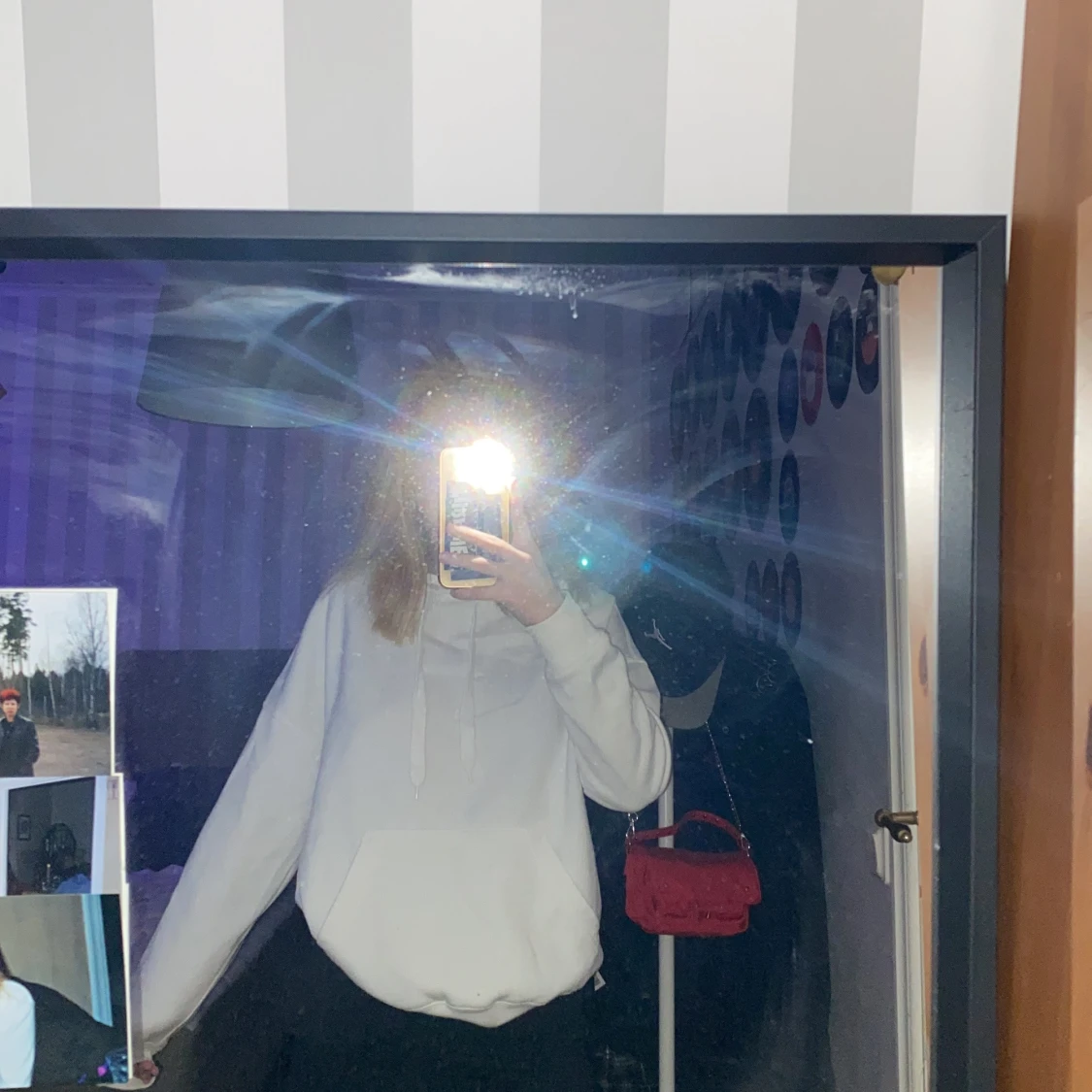 En mysigt vit Hoodie, använd ganska väll. Skulle säga att den passar bra till både xs och s. Skriv till mig ifall ni har några frågor. Köparen står för frakten 🤎