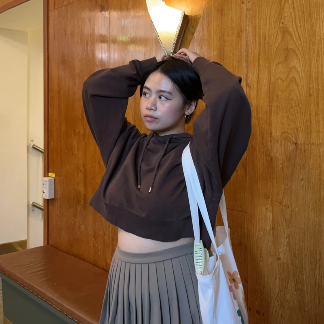 croppad sweater med hoodie från weekday i jättemysig höst färg
