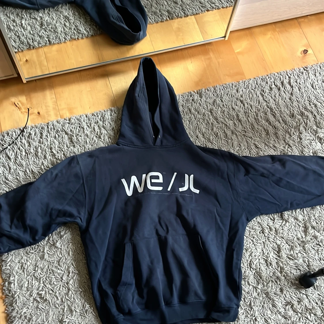 Mörkblå hoodie. Ganska använd säljs drf billigt. Pris diskuterbart 🥰🫶