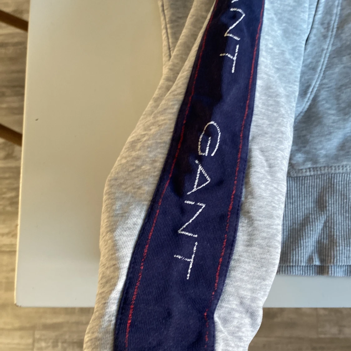 Grå Gant Hoodie. Fint skick men har legat nedpackat så skrynklig. Stl L