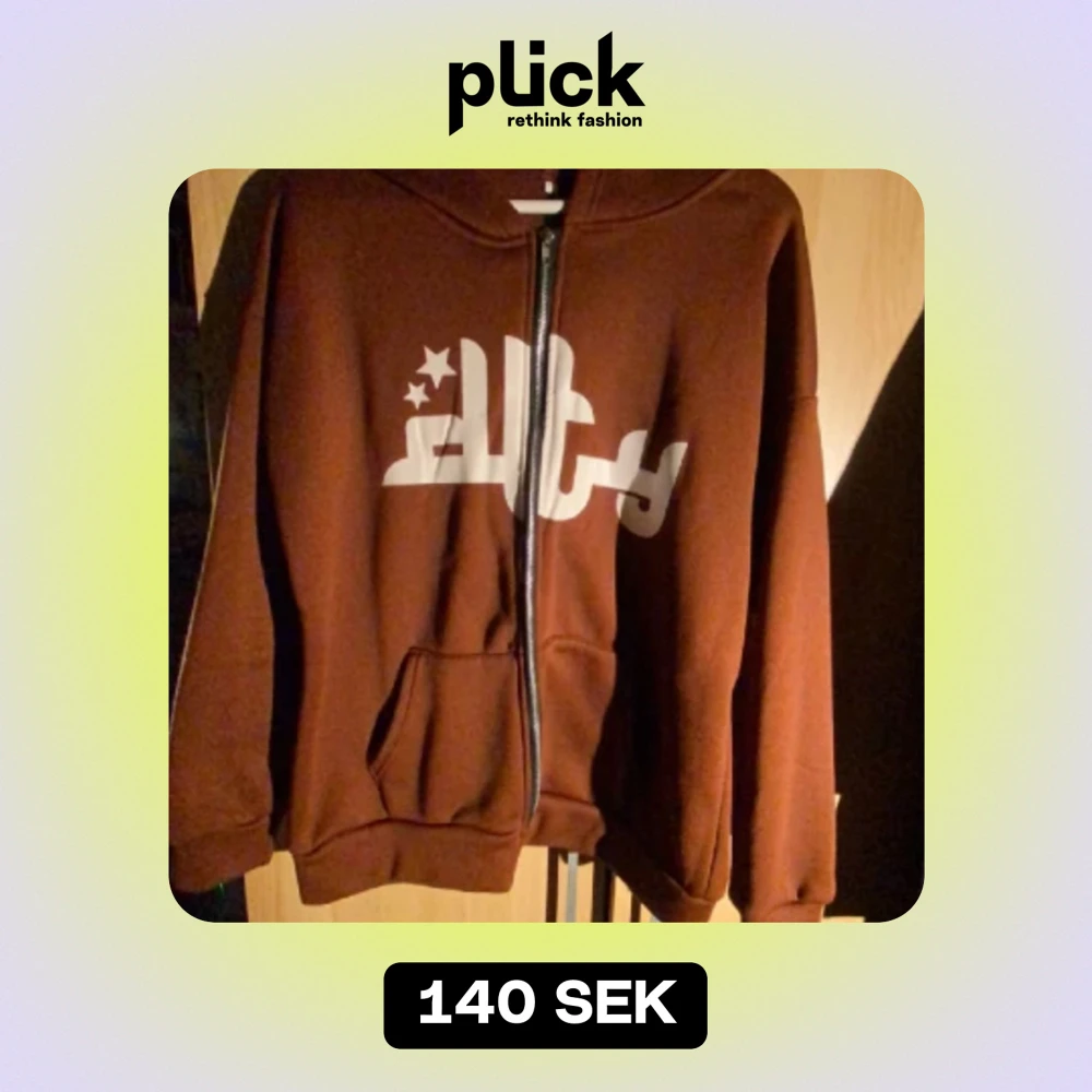 Brun zip up hoodie med coolt tryck