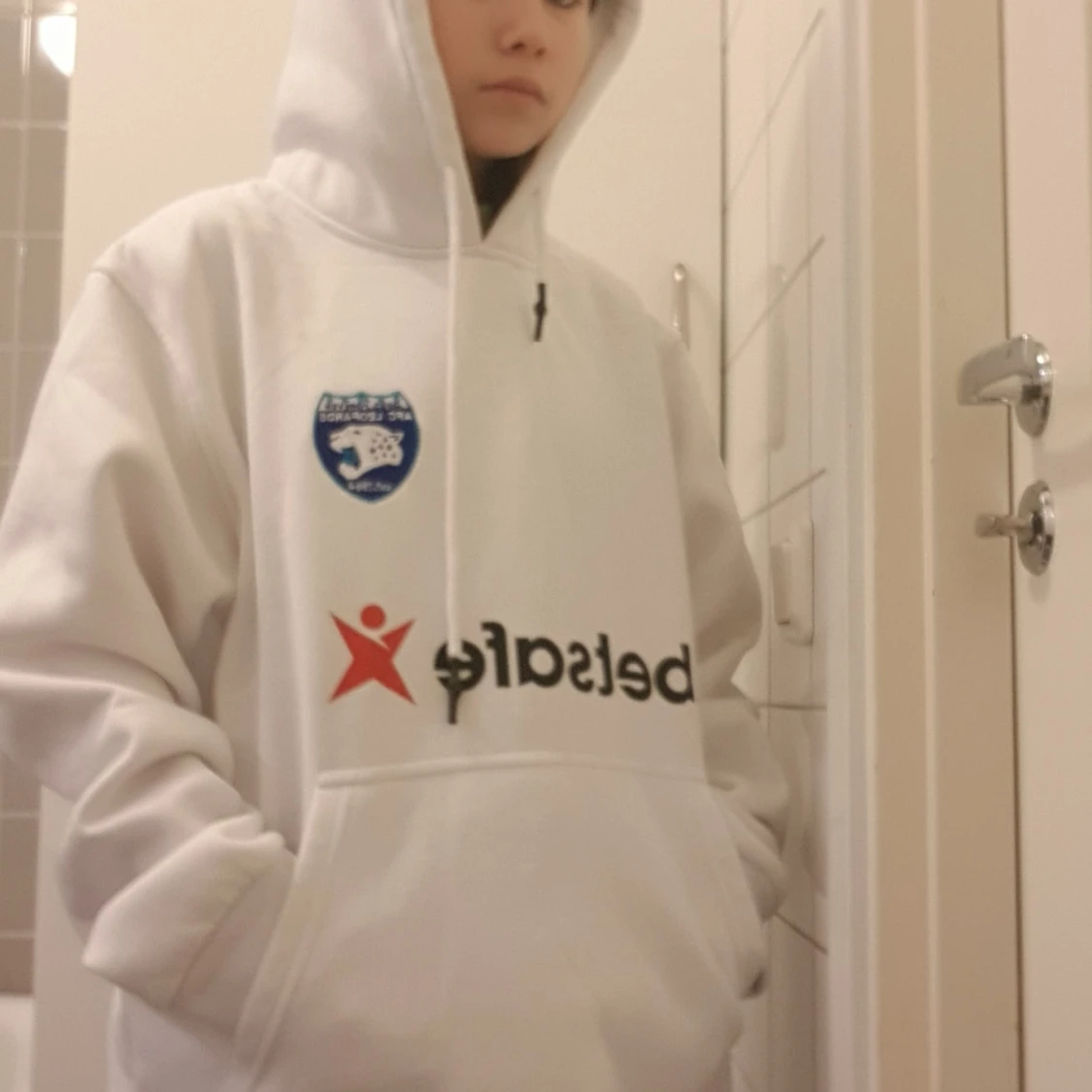 En oversized vit hoodie som jag använt 2 gånger. Rensar garderoben så allt ska bort!