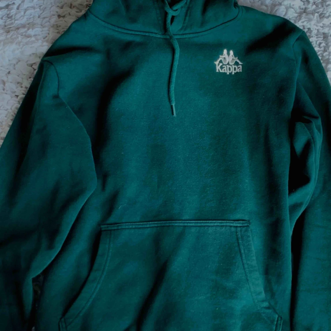 Riktigt snygg kappa hoodie men en mörk grön färg som är galet snygg på sommaren lite sliten men trycket är fortfarande i gott skick