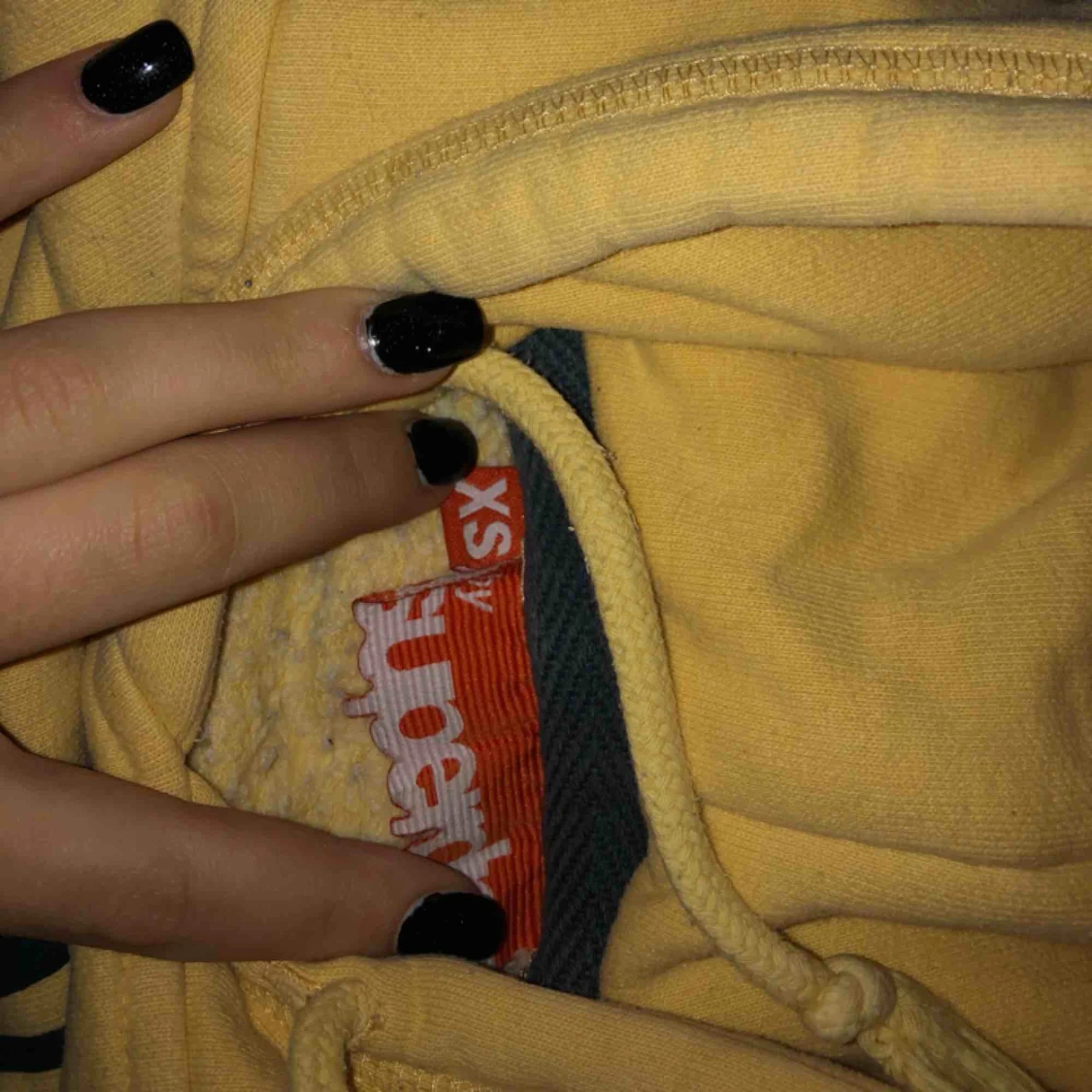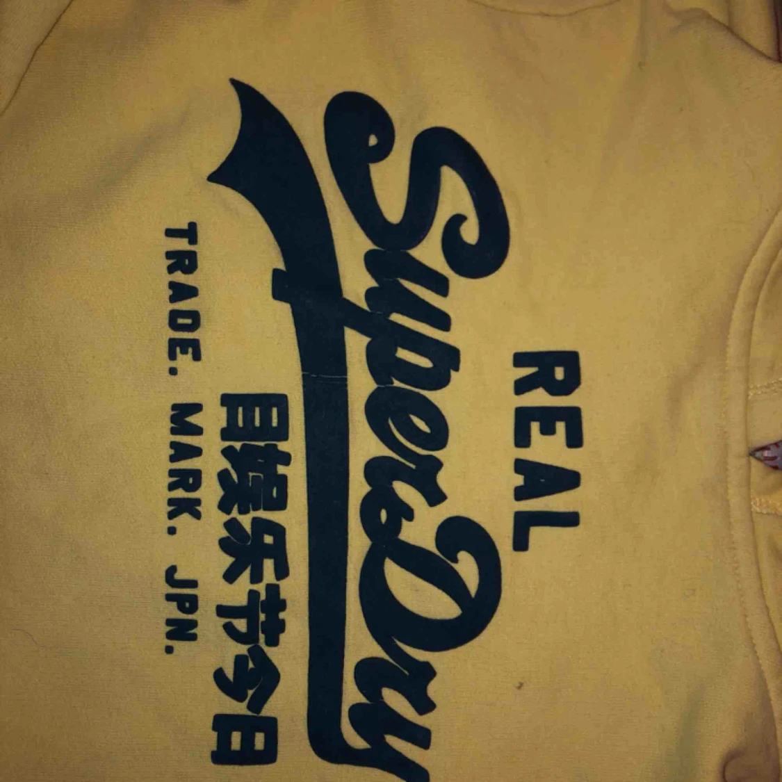 Superdry hoodie i fett cool gul färg, även om den är använd så är den fortfarande varm och härlig och säljs bara för 200kr !!!