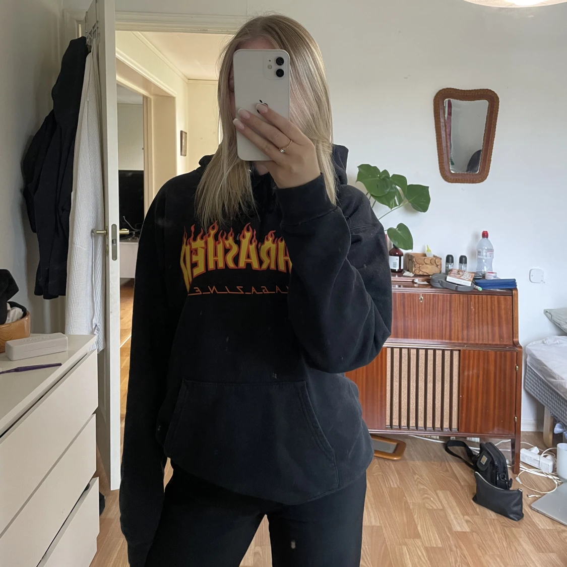 Säljer nu min Thrasher hoodie!! Nypris 1249kr säljer min för 350kr!😇 Väldigt fin passform men tyvärr används den ej längre☺️. Pris kan diskuteras vid snabb affär😇