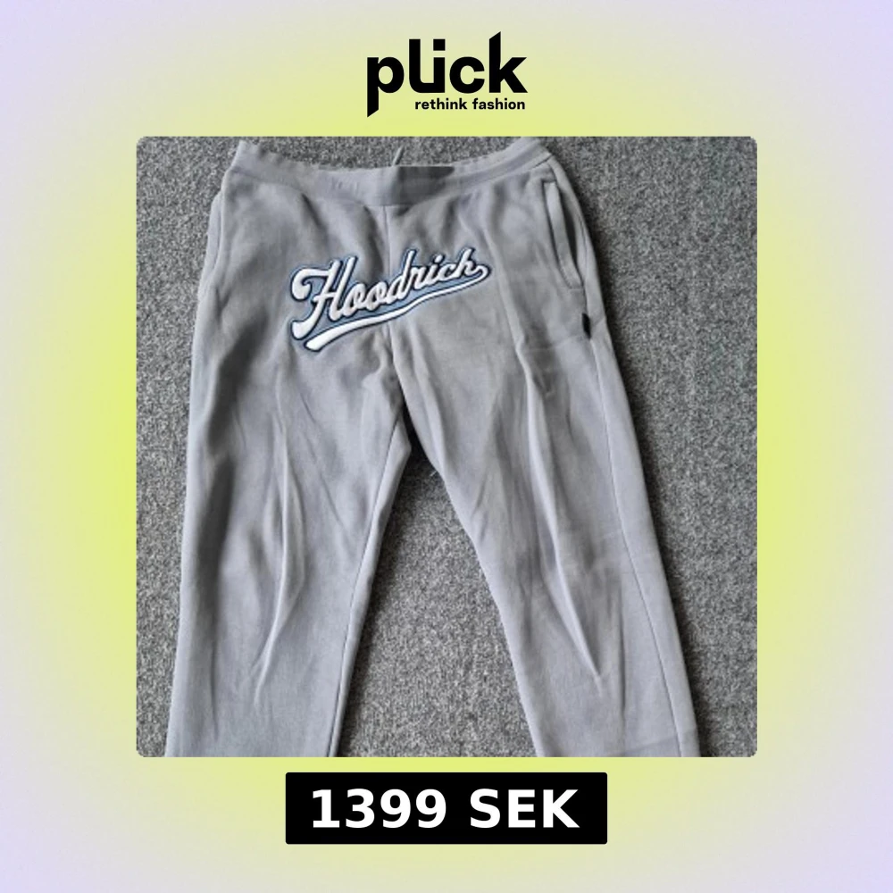 Grå/blå mjukisbyxor från Hoodrich med broderad logga framtill och liten brodyr bak. Byxorna har normal passform, resår i midjan och sidofickor. Sedan en grå/blå hoodie från hoodrich med broderad logga fram- och baktill med en ficka i vänstra armen. Storlek M på hoodien och L på byxorna.