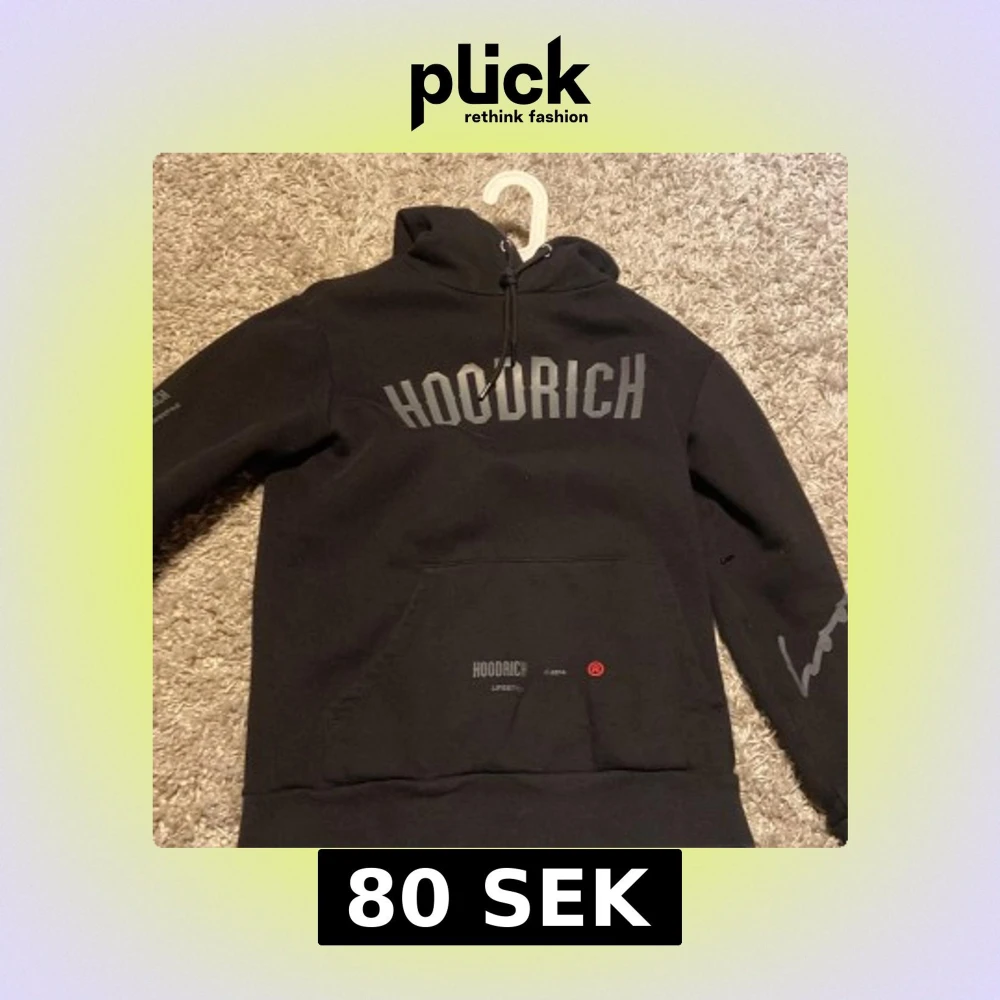 Snygg svart hoodie från Hoodrich med tryck både fram och bak. Den har en justerbar huva och en stor ficka framtill. Perfekt för en avslappnad stil.
