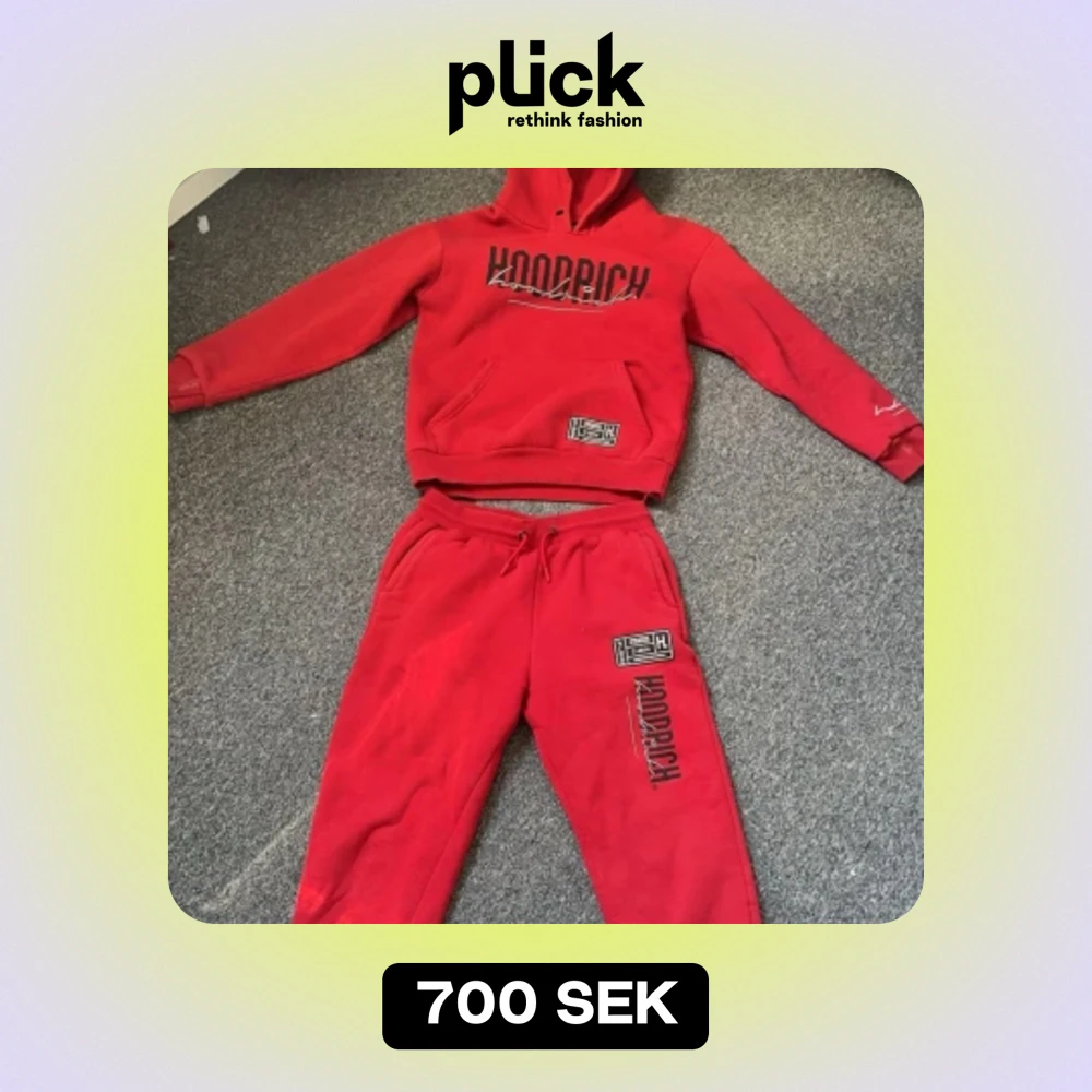 Tröja strl: S Byxor strl: S Bara använt några gånger och endast en pytteliten defekt i mudden på ärmen (se bild 5) Vet inte om det är äkta eller ej därav priset. 700 kr för hela settet men önskas endast ett av plaggen är det 400 kr styck.