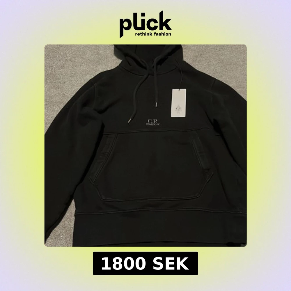 Säljer en stilren svart hoodie från C.P. Company. Den har en klassisk design med känguruficka och justerbar huva. Perfekt för en avslappnad look.