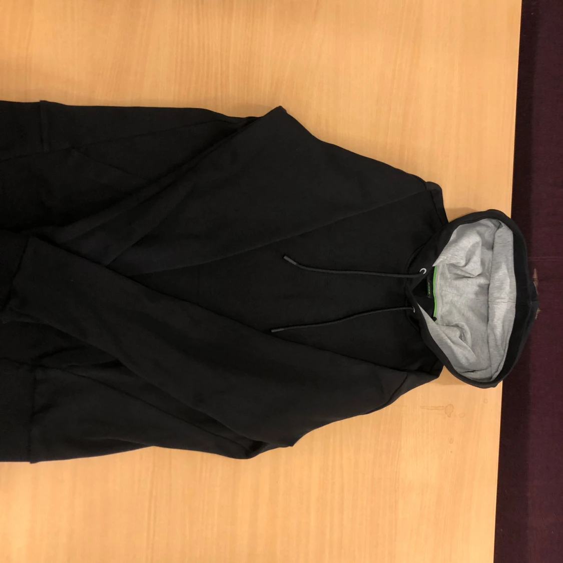 Snygg och stilren hoodie från HUGO BOSS i klassisk svart färg med diskret upphöjd logga framtill. Den är gjord i ett mjukt och bekvämt material som passar perfekt till både vardags och mer avslappnade tillfällen. Insidan av huvan är grå, vilket ger en fin kontrast och extra detalj. Storlek: Small. Skick: Som ny – inga skador, fläckar eller tecken på slitage. Autentiserad: Äkthetsverifierad. Passform: Normal/slim fit med klassisk känguruficka och justerbar dragsko i huvan 💸 Cirkapris ny:1200kr