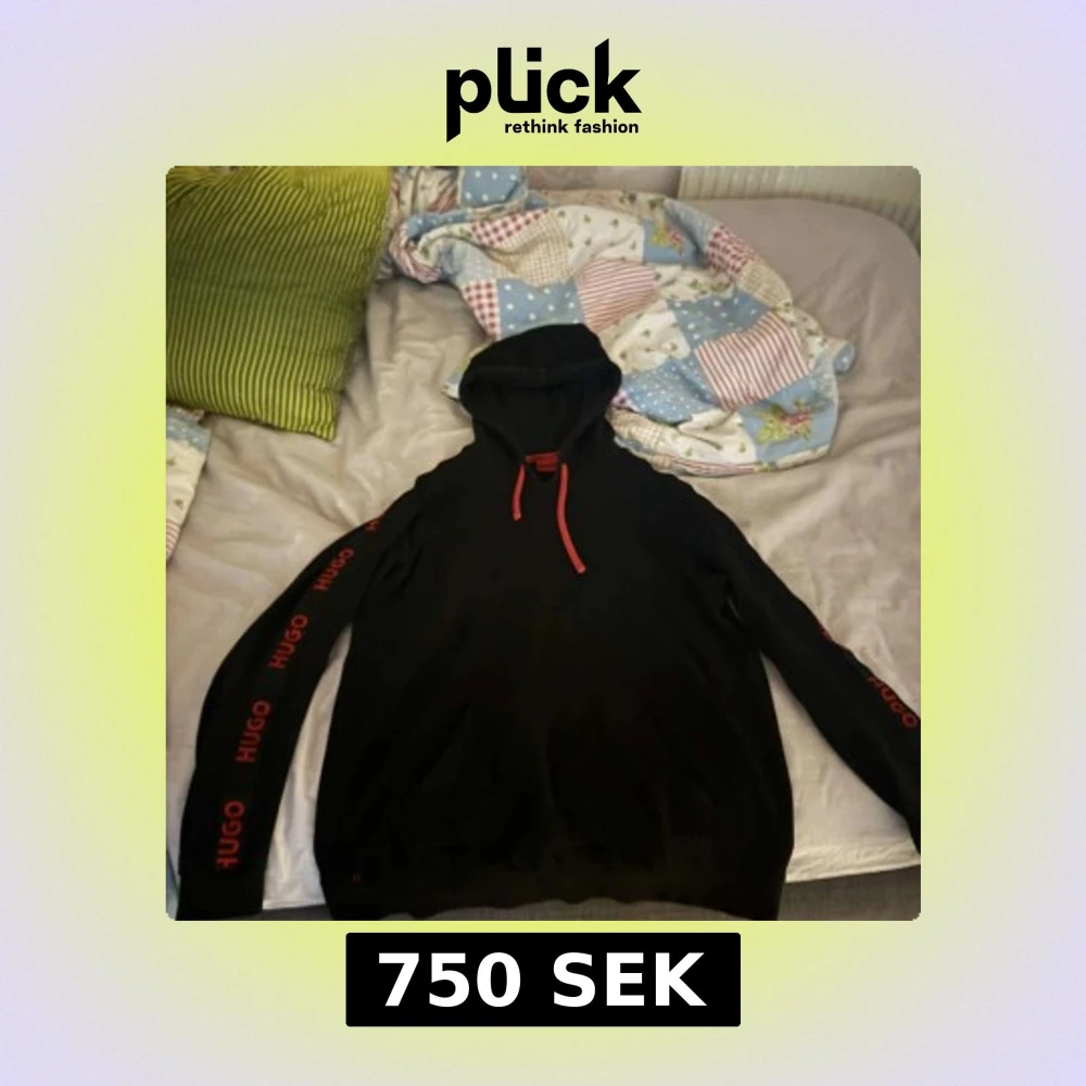 Svart hoodie från Hugo med röda detaljer