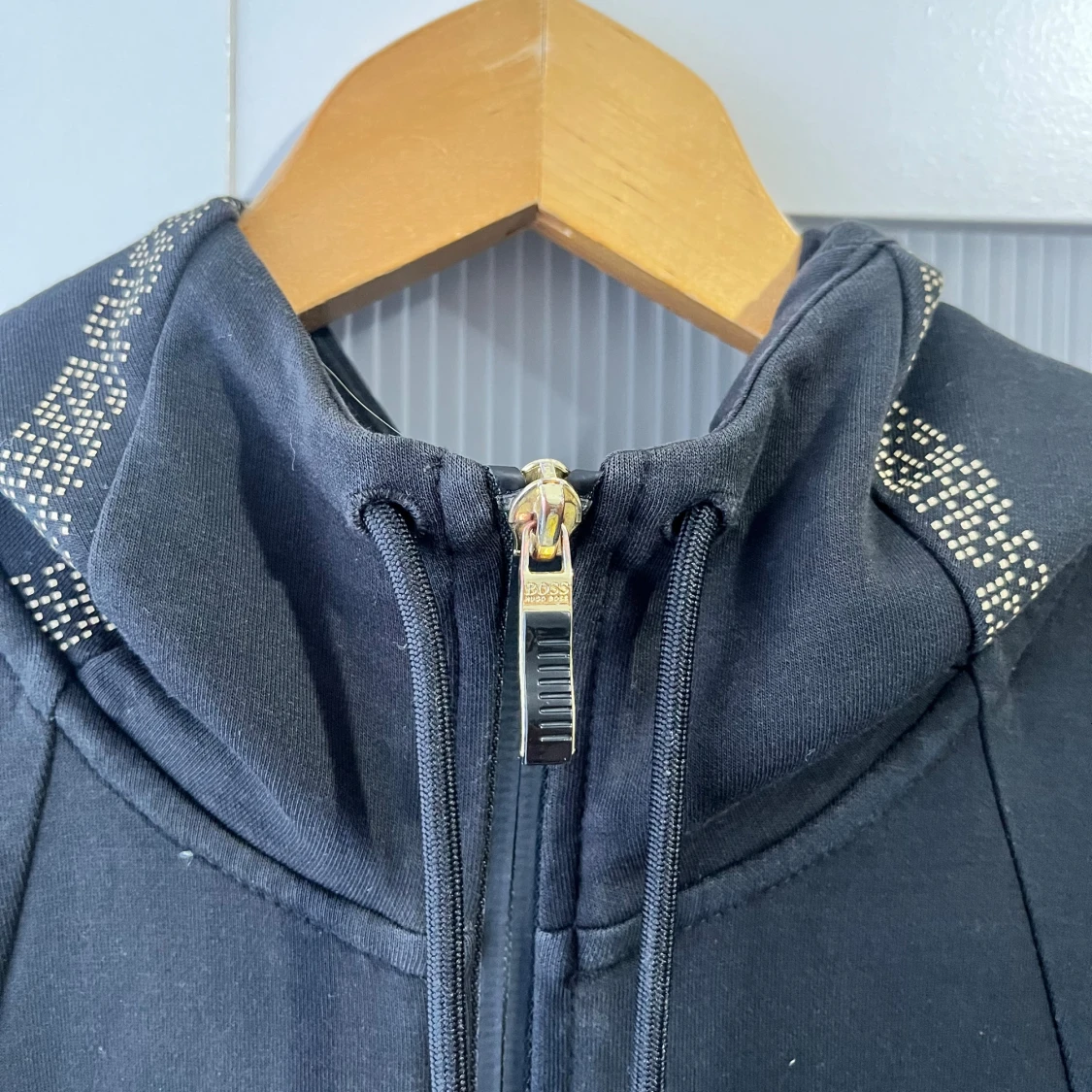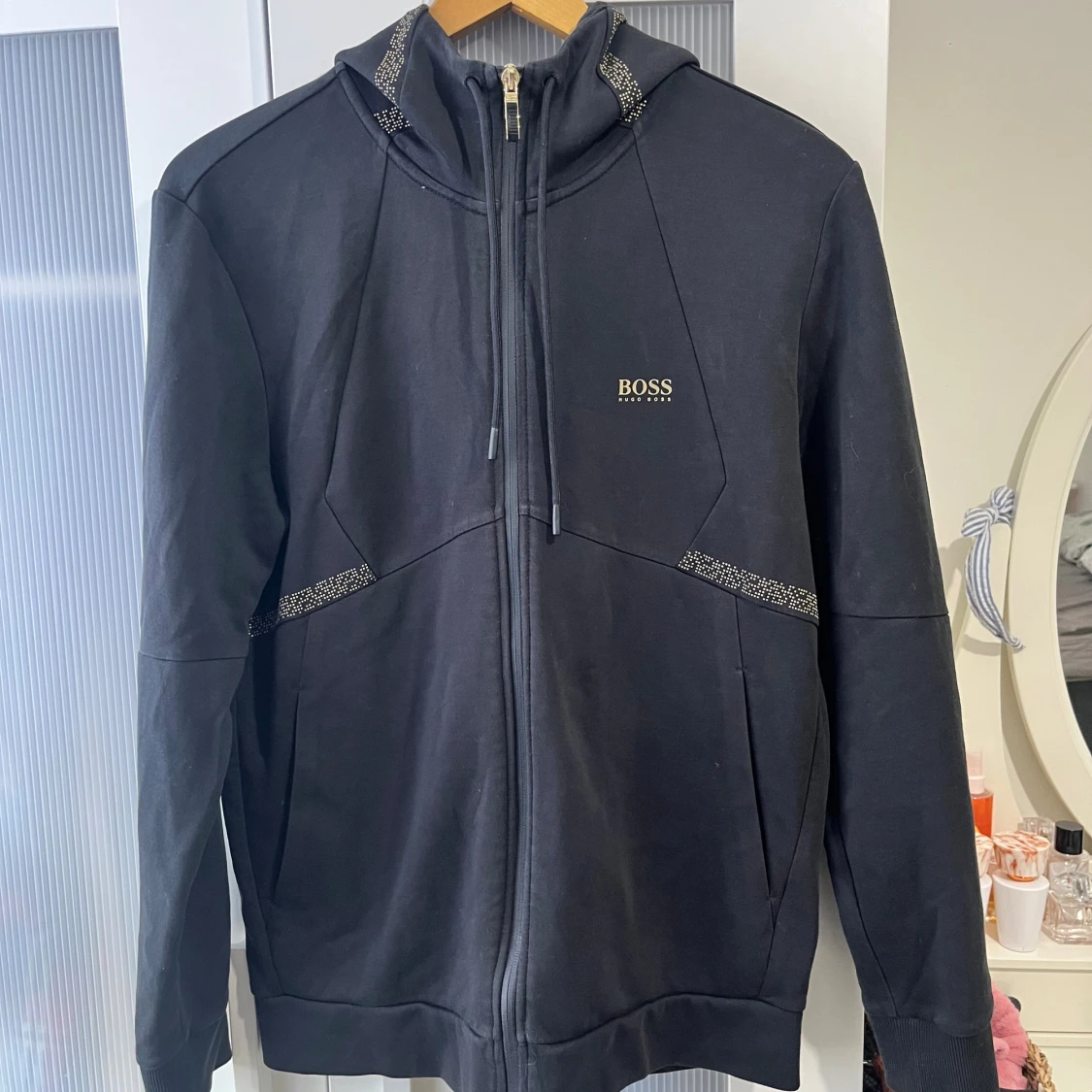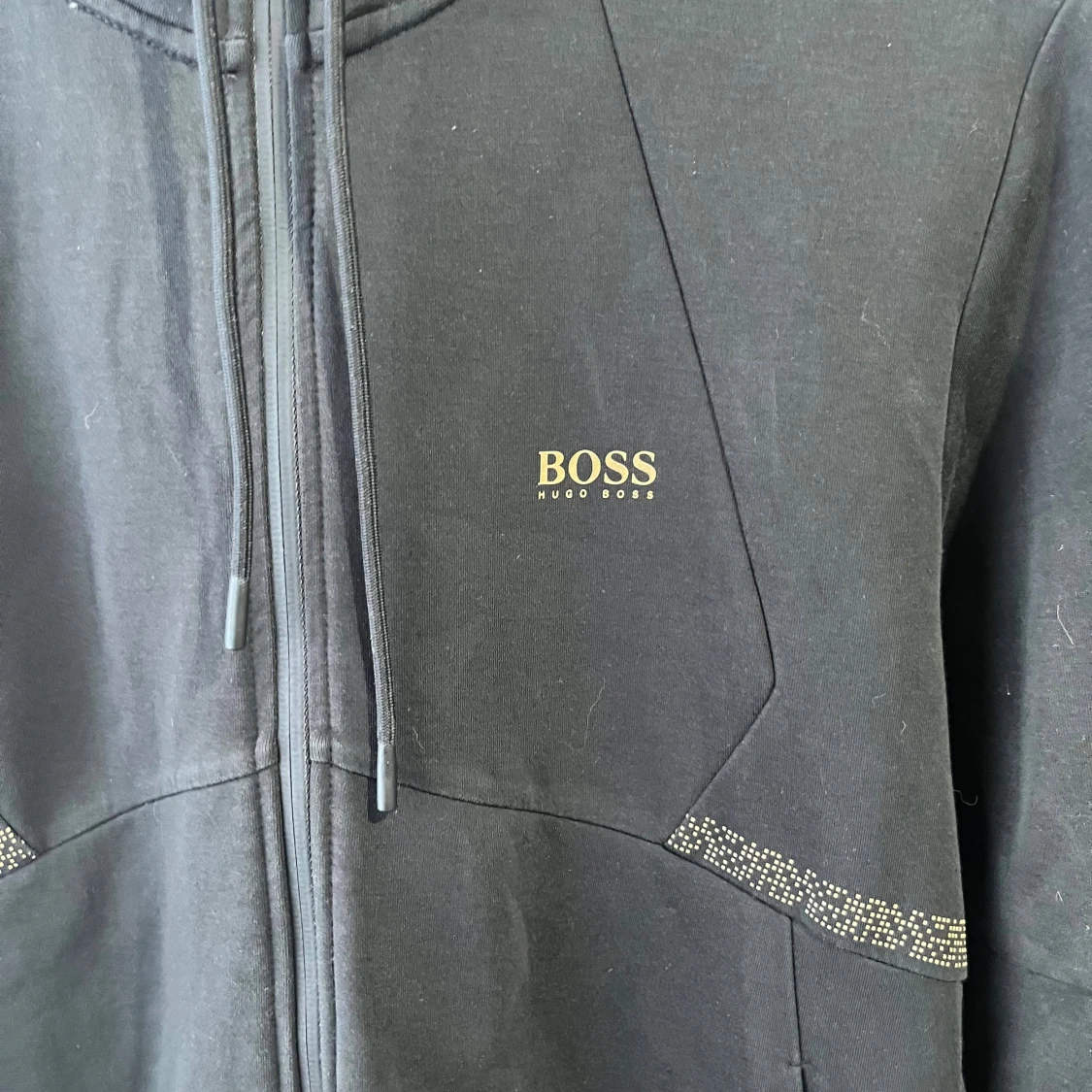 En mycket fin Hugo Boss huvtröja med dragkedja/ kofta med zip Svart färg med guldiga detaljer Storlek M på lappen I nyskick Skicka meddelande vid några funderingar Kolla gärna även in mina andra annonser