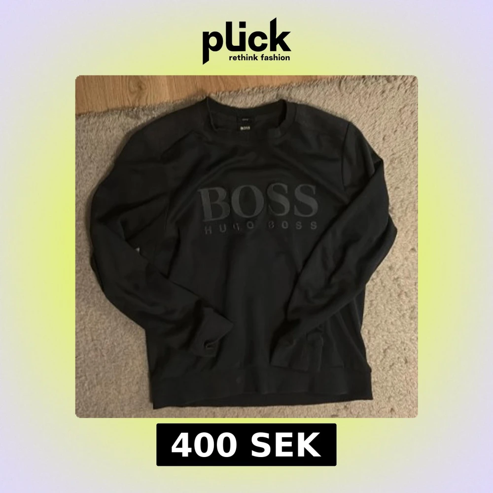 Svart långärmad tröja från Hugo Boss med stort BOSS-tryck på bröstet. Slim fit-modell med ribbade muddar vid ärmslut och nederkant. Tillverkad i mjuk bomull för en skön känsla och stilren look.