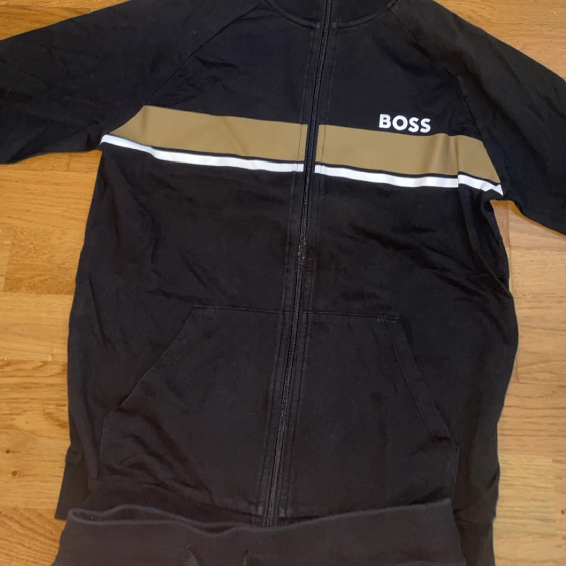 Hugo boss tracksuit köpt för 1 år sedan skick 9/10. Jag säljer denna pga att den ej passar längre använd 2-3 gånger. Vid frågor hör av dig! Storlek S passar även Xs Fraktar runt Sverige och möts upp inom Göteborg❗️❗️
