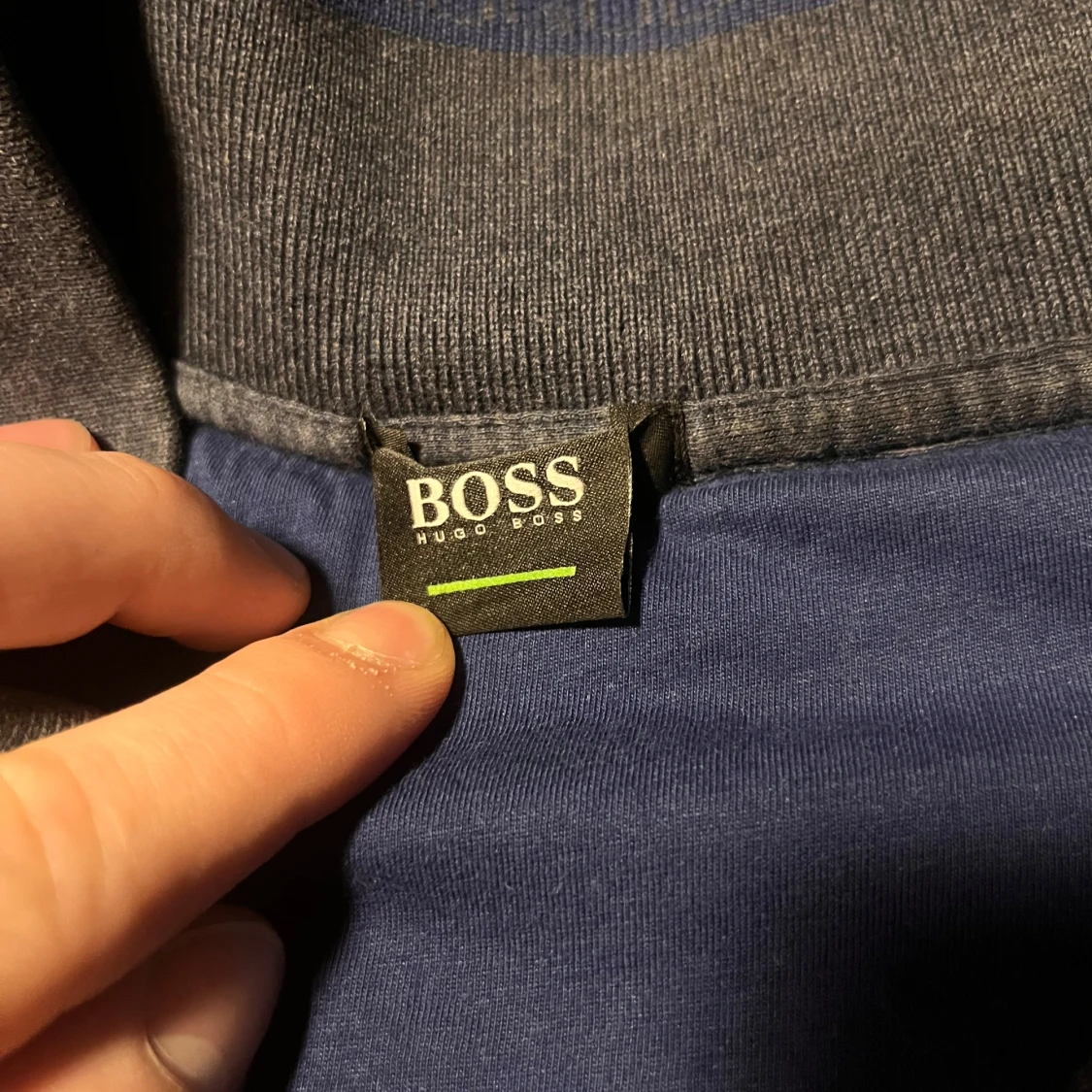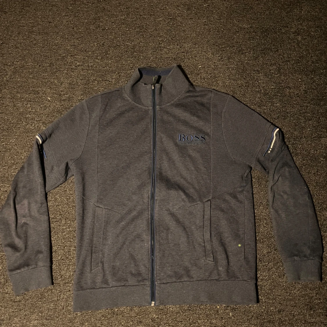 Säljer en snygg mörkblå tröja från Hugo Boss, haft den ett tag men inte använt den då den är för kort på mig, ny pris ligger runt 2000kr och säljer för 599 som är ett bra pris skulle jag säga skriv om de några frågor/ Theo