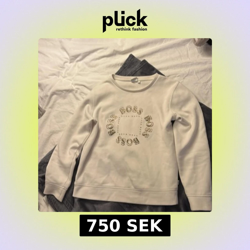 Vit sweatshirt från Hugo Boss i storlek XS. Tröjan har rund halsringning och tryck med BOSS-logga i cirkel på bröstet. Tillverkad i mjuk bomullsblandning med 71% bomull och 29% polyester. Långärmad och med klassisk passform. Ny pris 1800kr