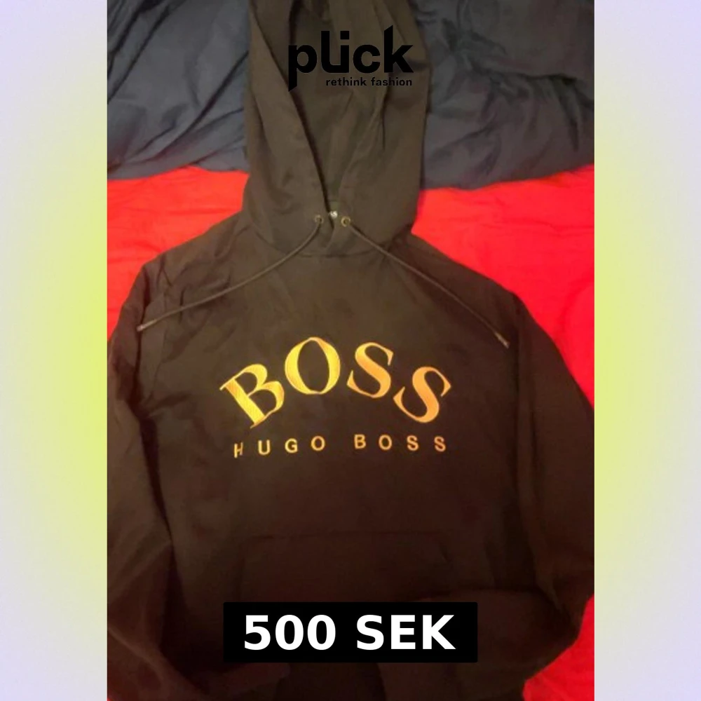 Svart hoodie från hugo boss med tryck på bröstet i färgen guld perfekt för vardags användning och passar perfekt med jeans.