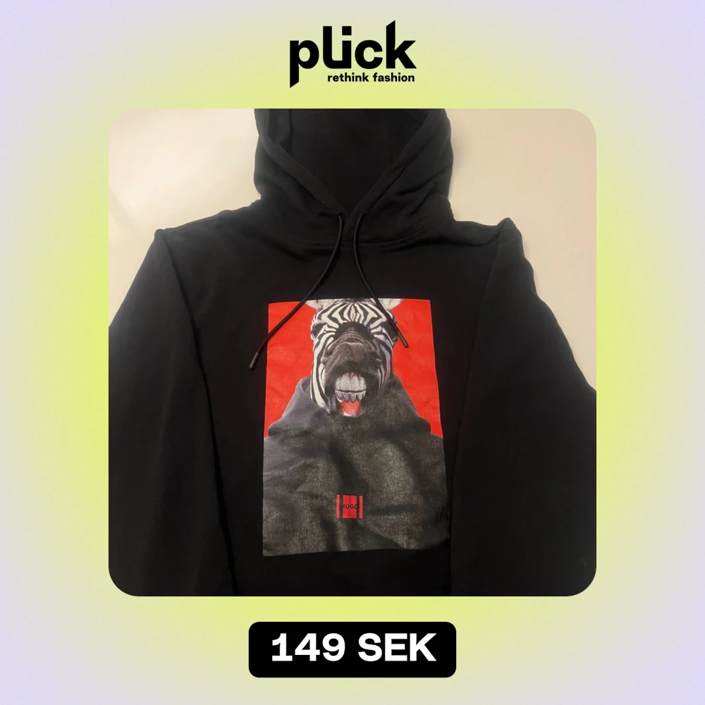 Säljer en svart hoodie från Hugo med en cool zebra på framsidan. Den har en klassisk huva och är perfekt för en avslappnad stil. Passar bra till både vardag och chillkvällar. Hoodie är i bra skick och har används 1-2 gånger 8/10 skick.