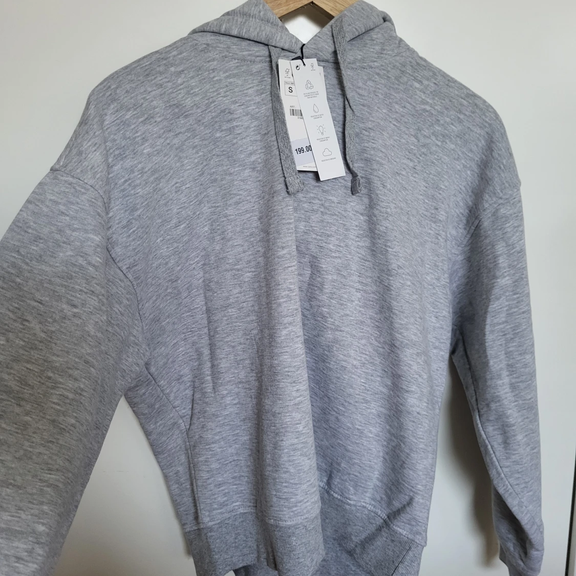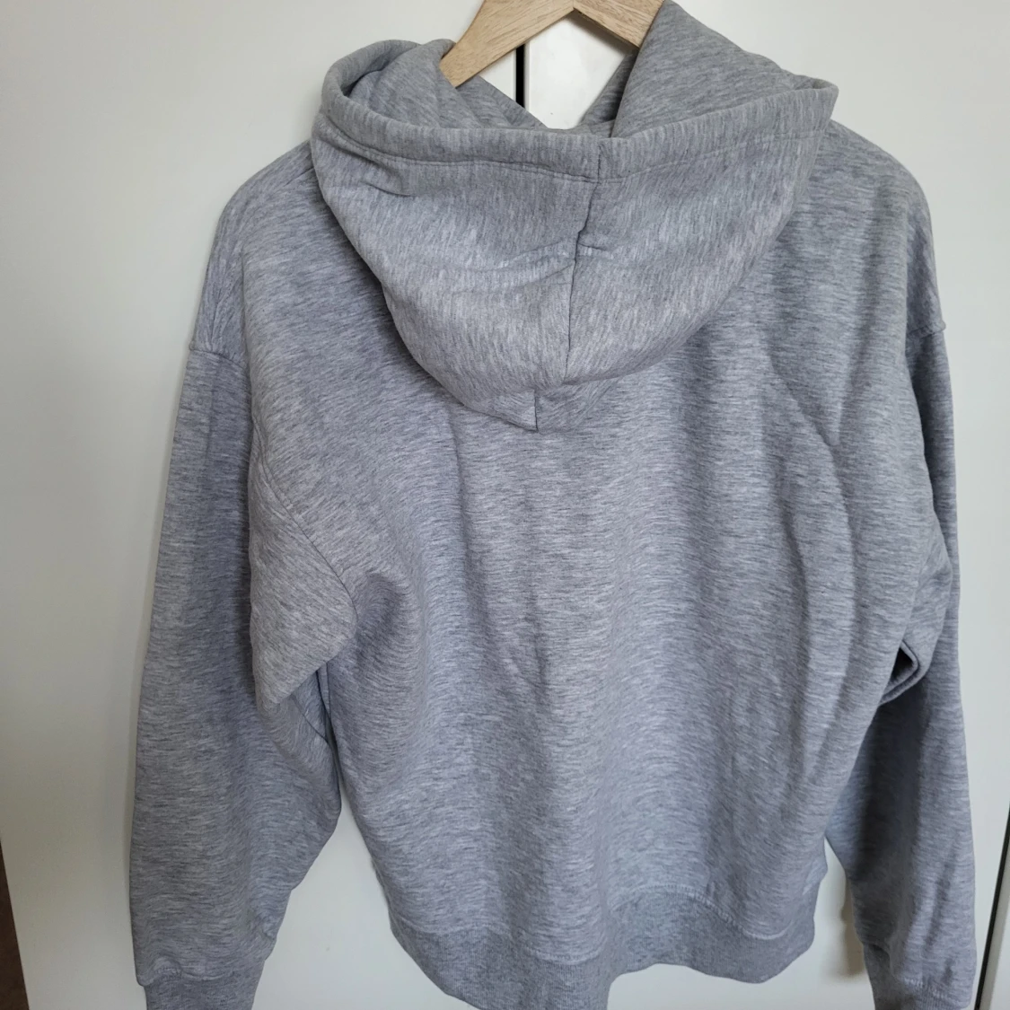 En grå huvtröja med huva. Tröjan är i en mjuk och bekväm kvalitet. Den har en normal passform och är perfekt för vardagsbruk. Nypris 299:-