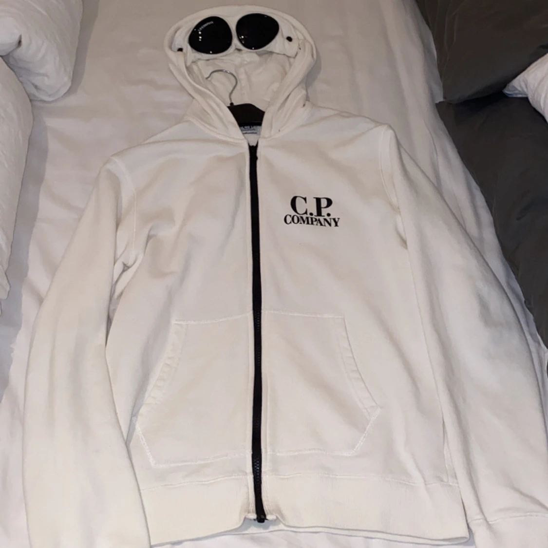 Vit CP Company zip tröja. Anvönd ett fåtal gånger. Nypris 2300kr