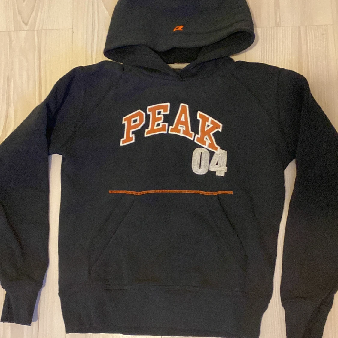 En svart hoddie med tryck i storlek L. Är i Bra skick!