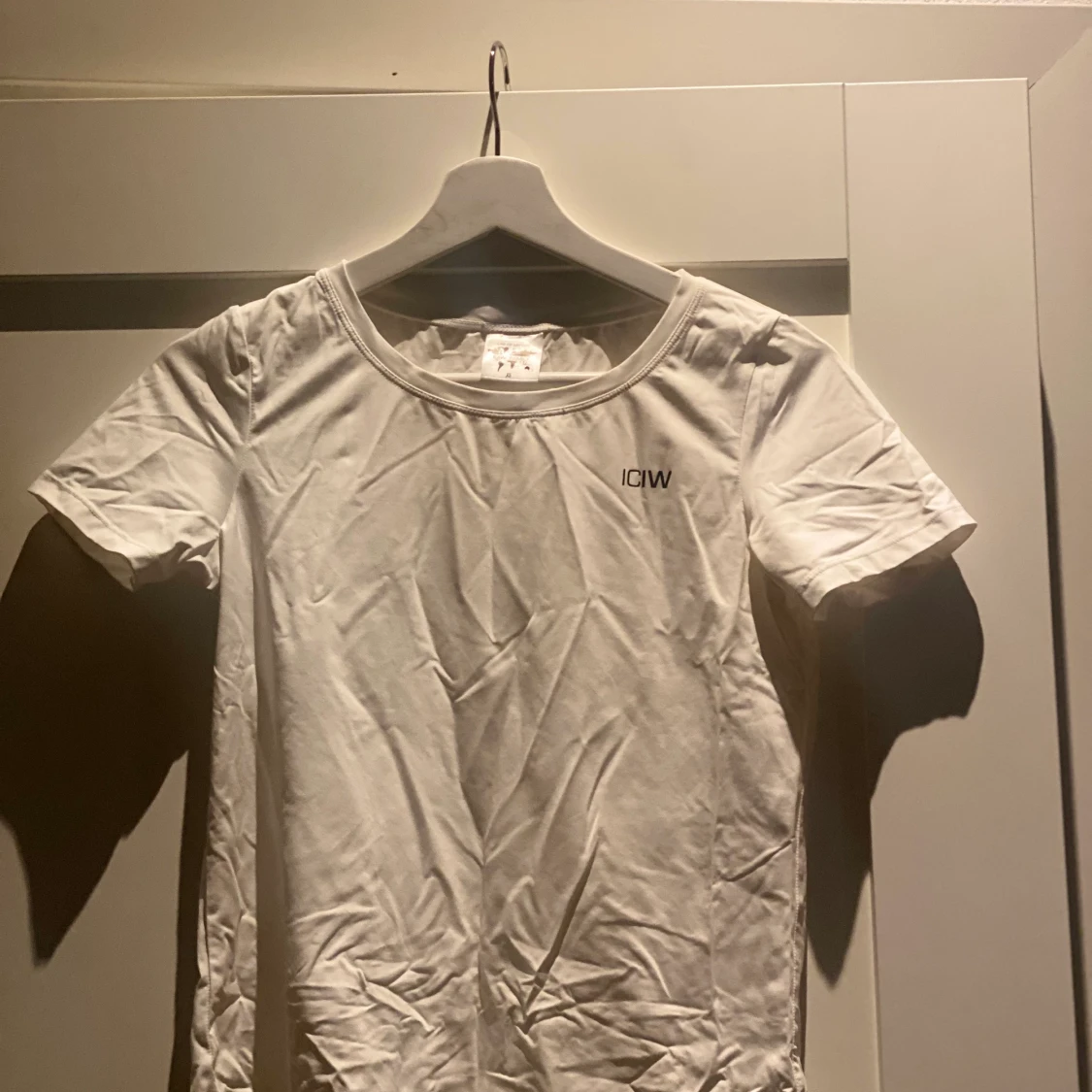 En vit träningstopp i ett tunt material som passar bra vid högintensiv träning (Pris kan diskuteras)