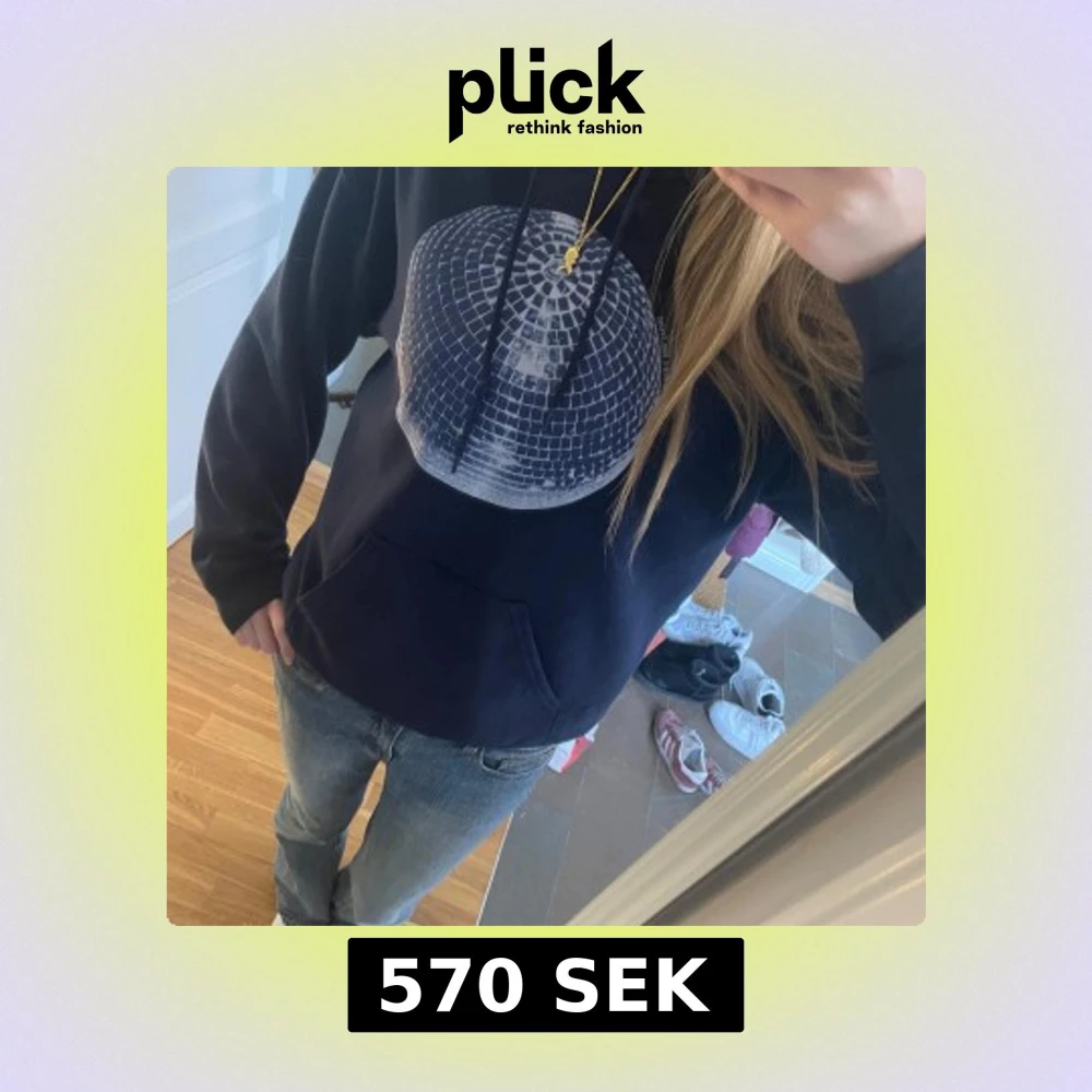 mörkblå hoodie från inprintwetrust med diskokula tryck! jätte bra skick, säljer då den ej kommer till användning😊
