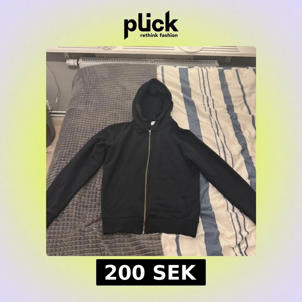 Svart hoodie från Jack & Jones hel dragkedja framtill och två stora fickor. Tröjan har huva med snörning och långa ärmar. Materialet är mjukt och känns som bomull eller polyester, perfekt för chill dagar. Enkel och stilren design utan tryck eller mönster.