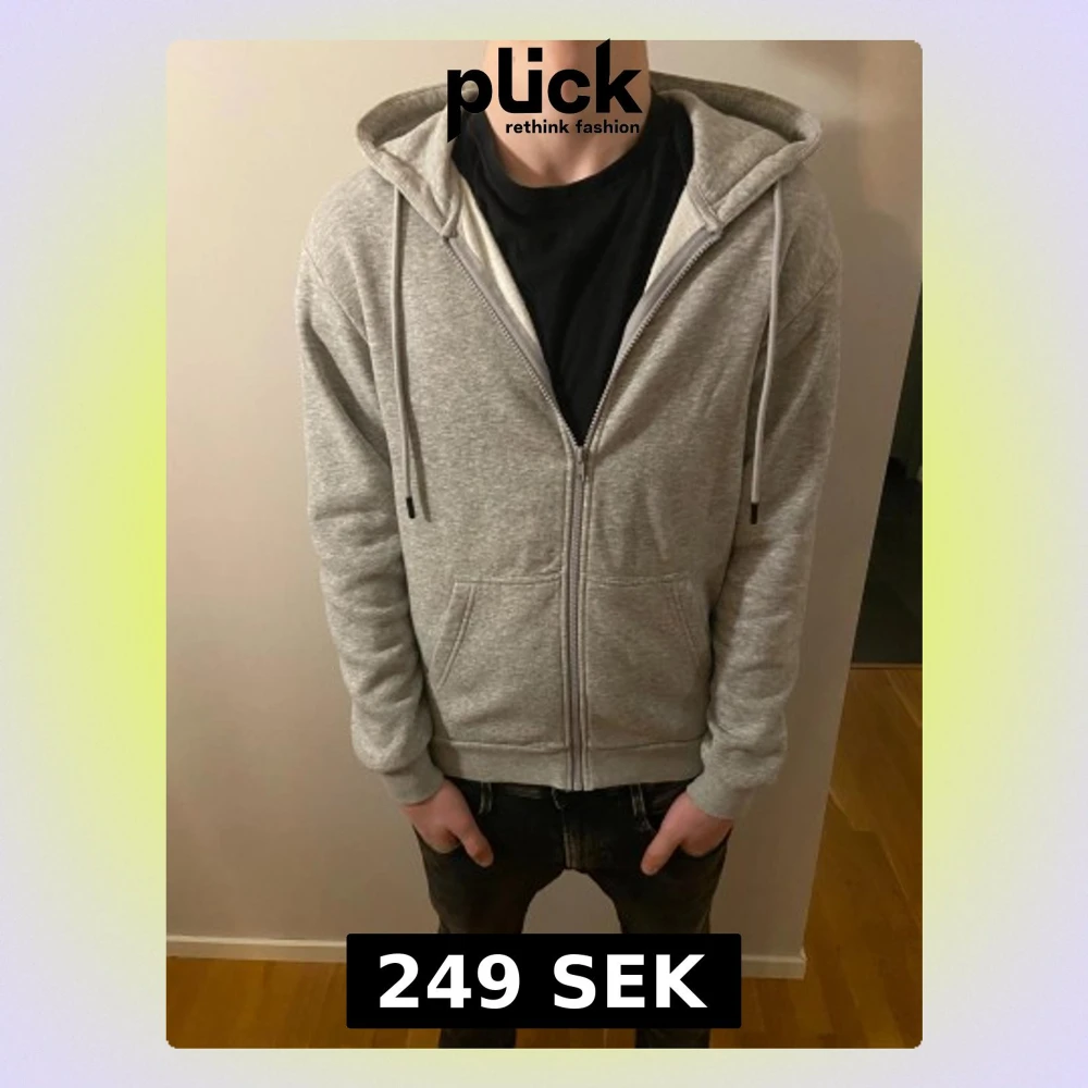 Snygg grå hoodie med dragkedja framtill och två fickor. Tröjan har huva med snörning | Storlek XS men sitter som en S | Skick 9,5/10 använd fåtal gånger |