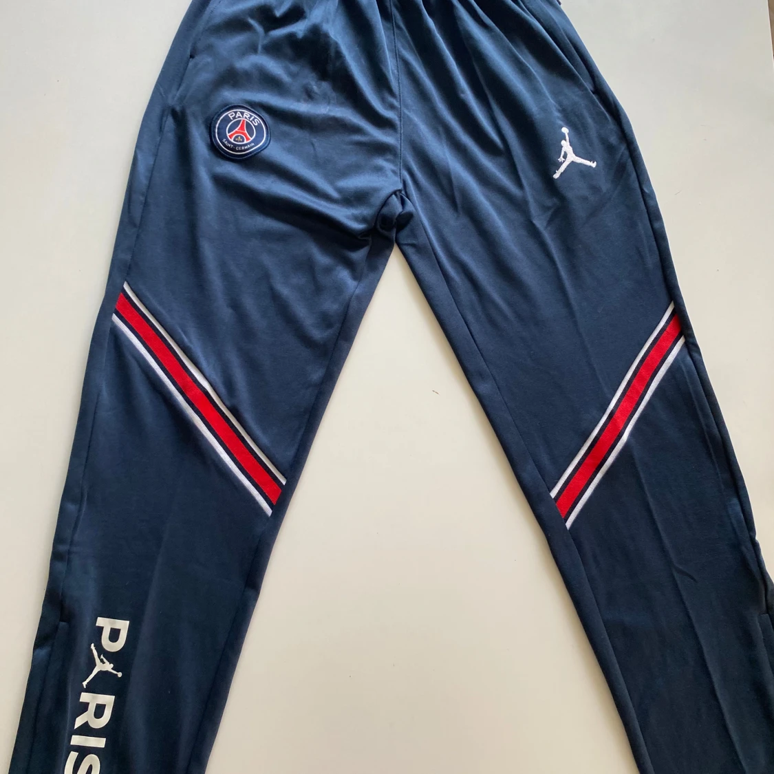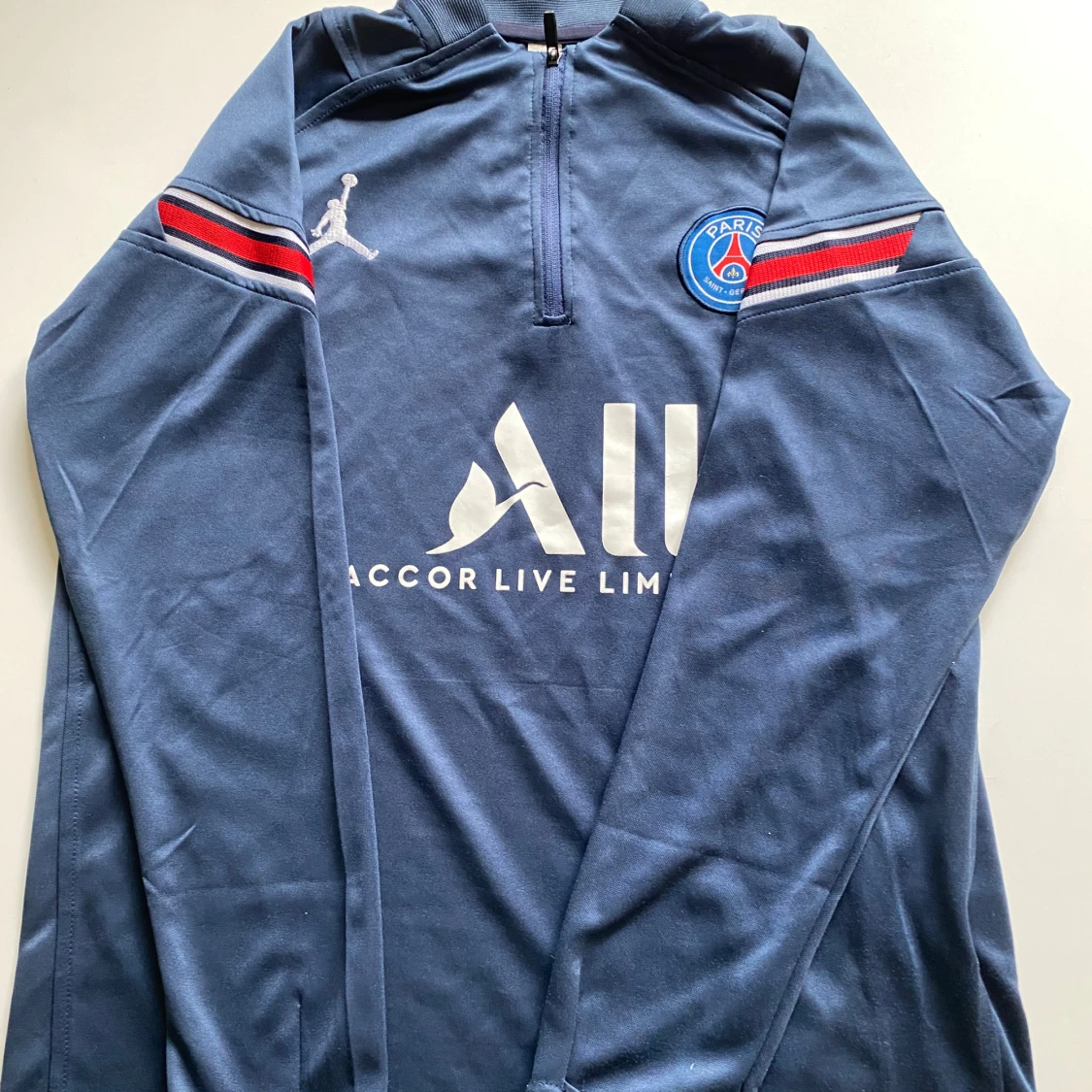Säljer ett nästan oanvänt PSG träningsset från Jordan-kollektionen. Endast använt 1–2 gånger men tyvärr för litet i storleken. Jag själv är ca 170 cm lång och tröjan är för liten för mig, passar om du är runt 140-155 cm lång ✅ ✅ Väldigt bekvämt material, perfekt för träning eller vardag ⚠️ Liten missfärgning vid PSG-loggan på byxorna (inget som stör helhetsintrycket) 💰 Pris kan diskuteras 👕 Behöver inte köpas som kit – går bra att köpa endast tröjan eller byxorna
