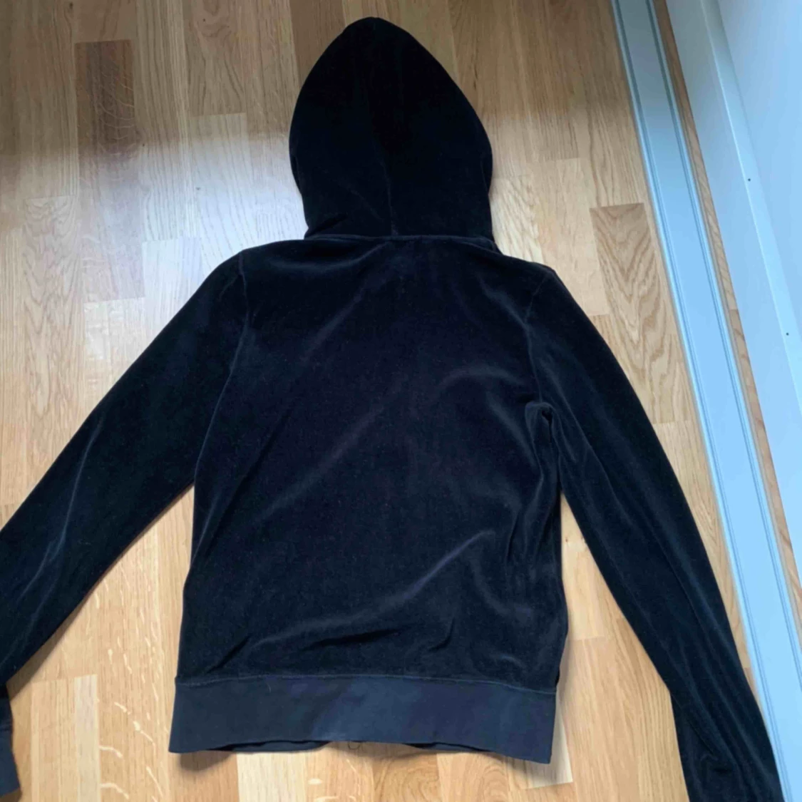 Juicy Couture zip hoodie. Material: velour. Fin skick, använd 3 gånger. Köpt i London i Juicy Coutures butik. Det är en barn L motsvarar S