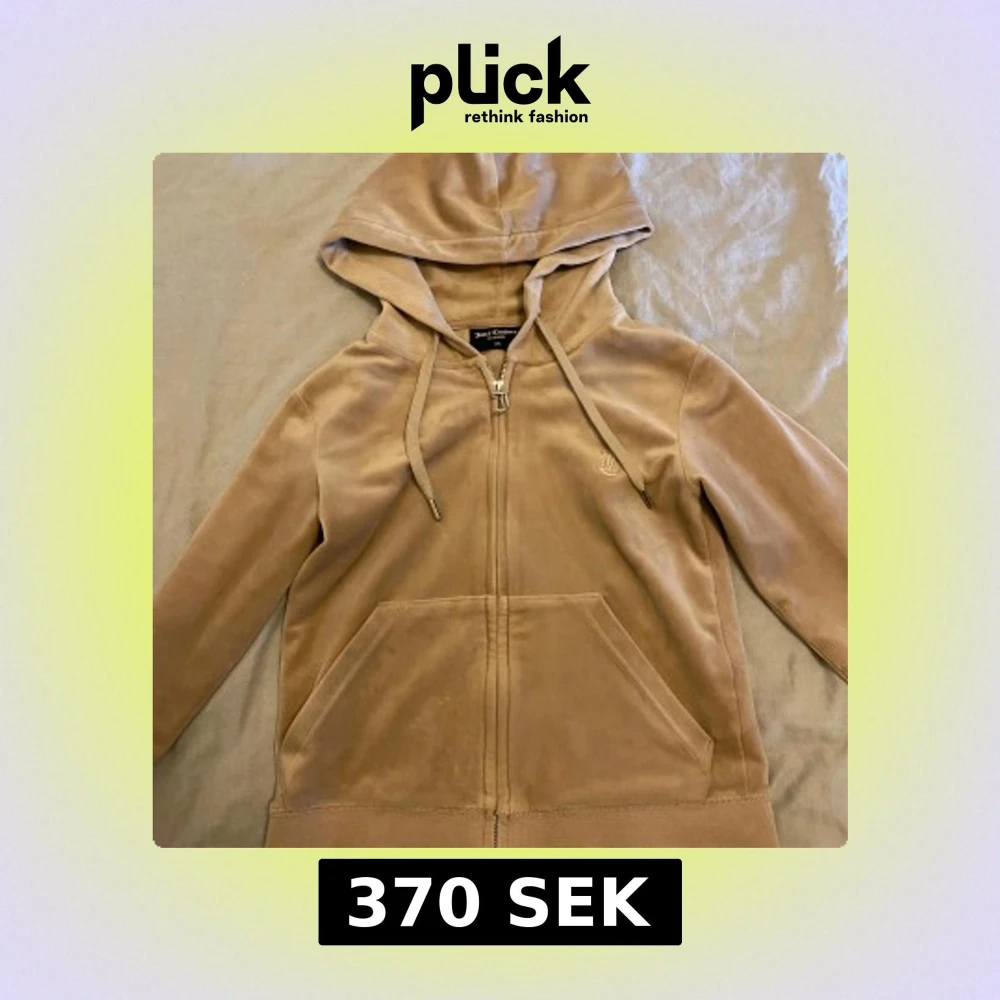 Säljer en beige hoodie i mjuk velour från Juicy Couture. Jackan har dragkedja framtill, huva med dragsko och två fickor. Klassisk Juicy Couture-logga på dragkedjan och liten broderad detalj på bröstet.