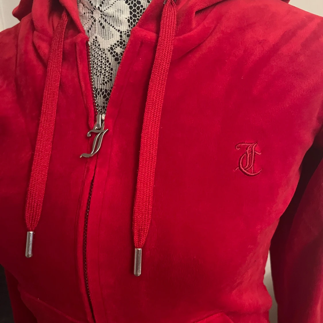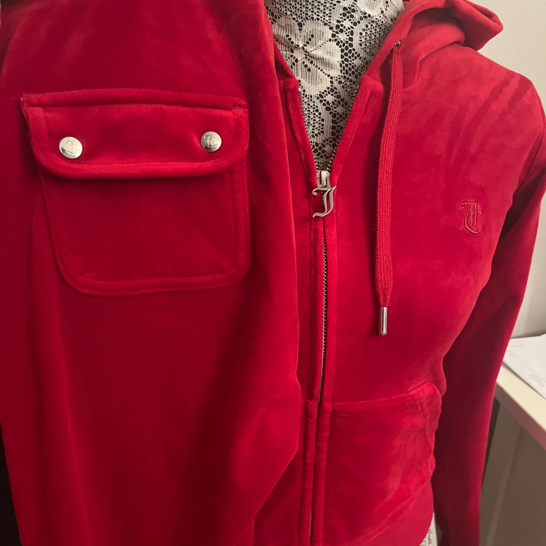 Säljer ett snygg röd velour set från Juicy Couture. Knappt använd så superfint skick!!❤️STORLEK S PÅ TRÖJAN OCH XS PÅ BYXAN