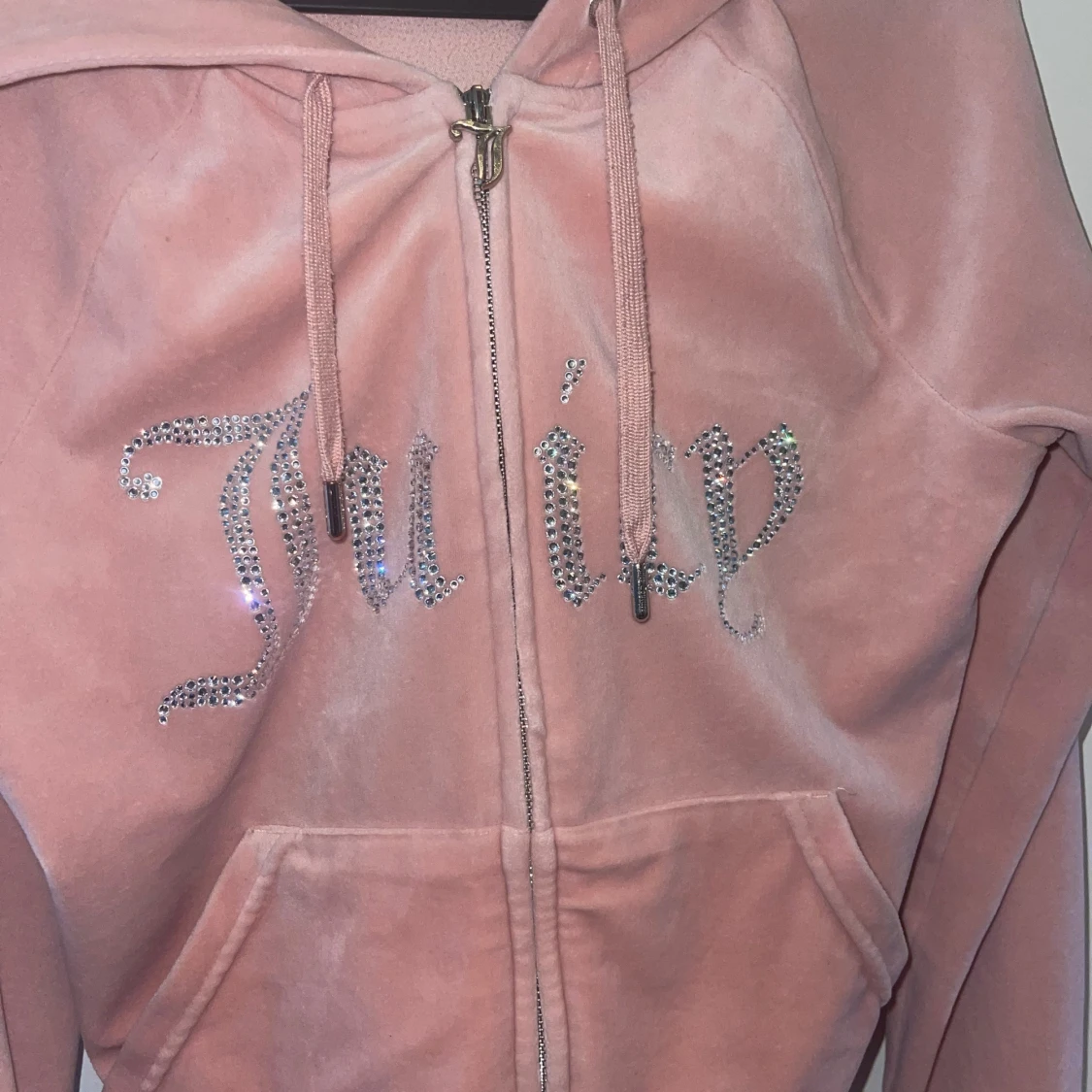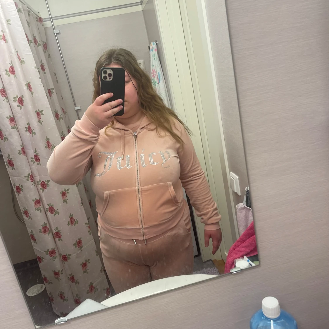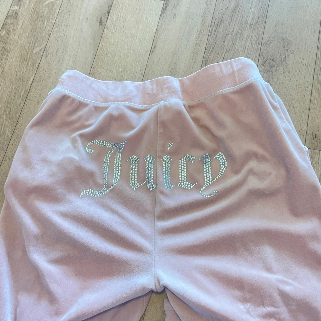 Säljer ett par ljusrosa set från Juicy Couture med glittrande strassdetaljer och stor Juicy-logga på baken. Byxorna har normal passform, resår i midjan och är gjorda i mjuk sammet för extra comfort. Perfekt för chill dagar hemma. Köpta för 2400kr i stockholm. Båda plaggen är i storlek L