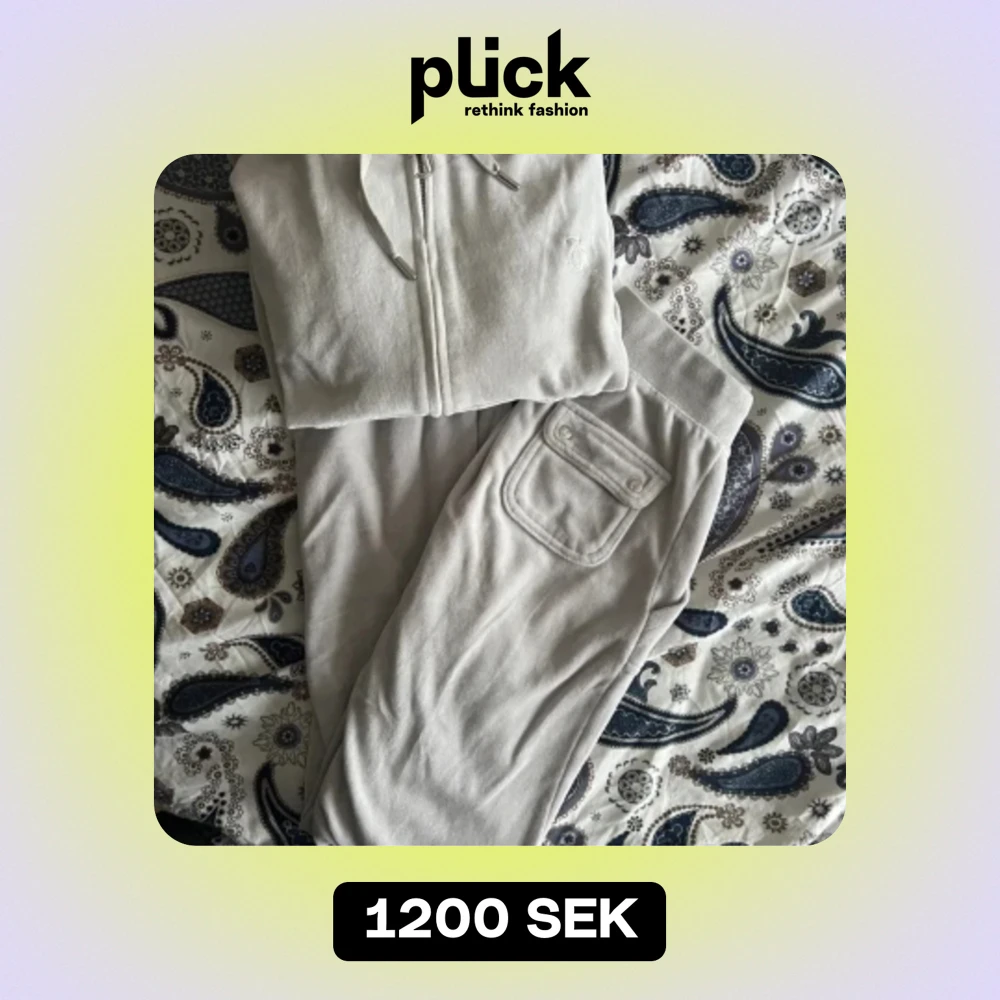 Super fint Juicy couture sett som i denna färg inte säljs längre. Säljer tröjan och byxorna tillsammans för 1200 och nypris är 2500💓Tröjan är i storlek M men sitter som S och byxorna i xs