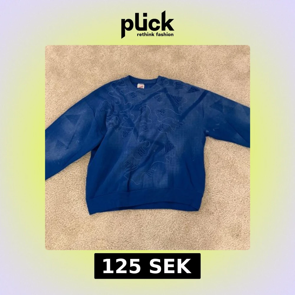 Blå tröja som är köpt på plick. Står storlek XL men sitter lite baggy på mig som har storlek S. Hojta till för fler bilder :-)