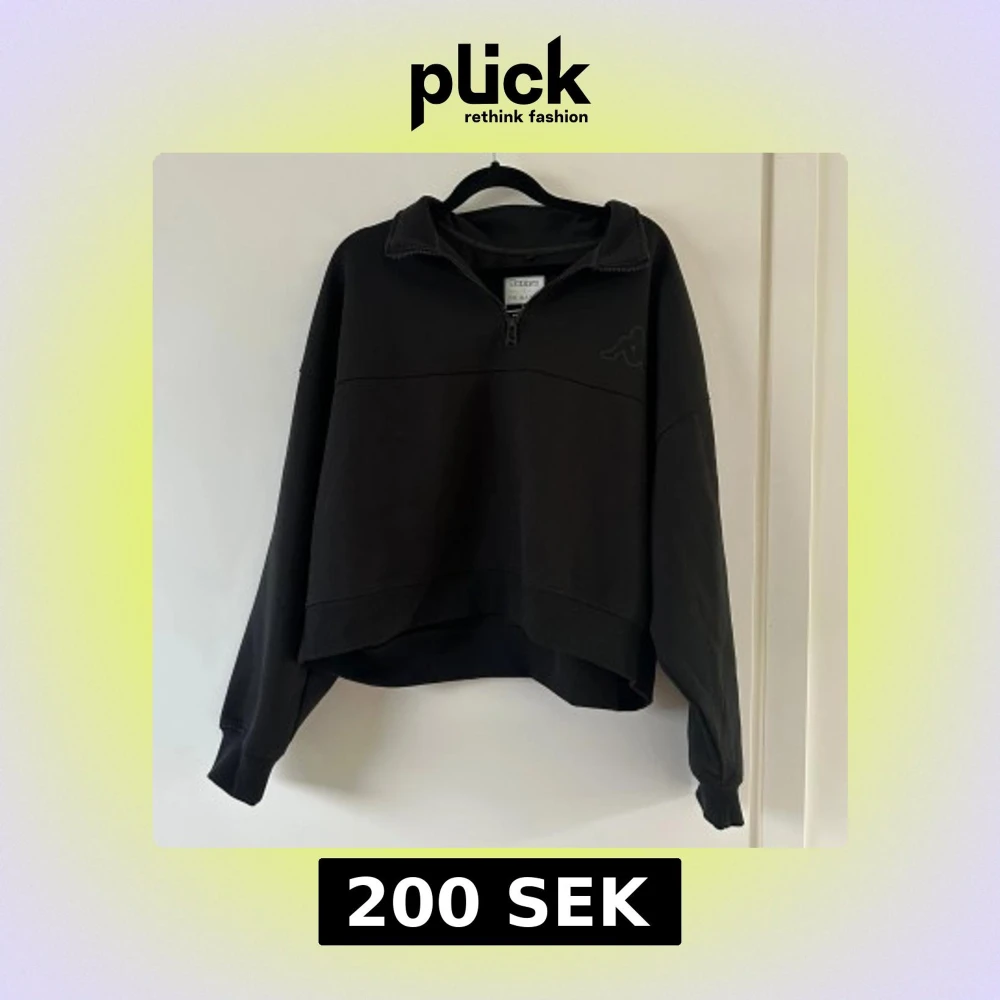 Svart oversized sweatshirt från Kappa x Primark med halv dragkedja och stor logga på ryggen. Tröjan har lång ärm, ribbade muddar och är gjord i mjuk bomullsblandning. Perfekt för en chill och sportig look.