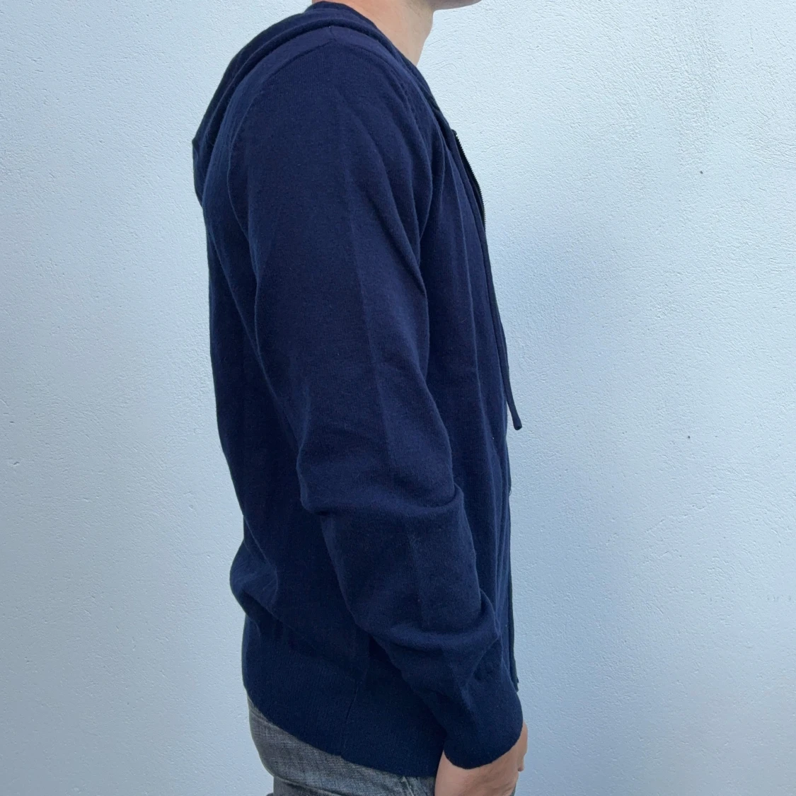 En stilren mörkblå Kashmir/merino zip hoodie i storlek M! Modellen är 177cm lång, passar lite längre! Använd 1 gång, därför skick 10/10! Hör av dig vid frågor!🌟